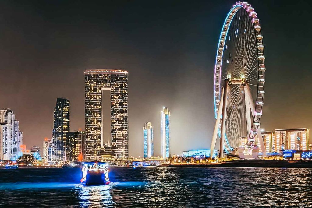 두바이 마리나 운하에서 출발하여 주메이라 비치 레지던스, 아인 두바이 파노라마 휠을 지나 유명한 팜 주메이라 외곽에 위치한 아틀란티스 호텔로 향하는 크루즈를 타세요.