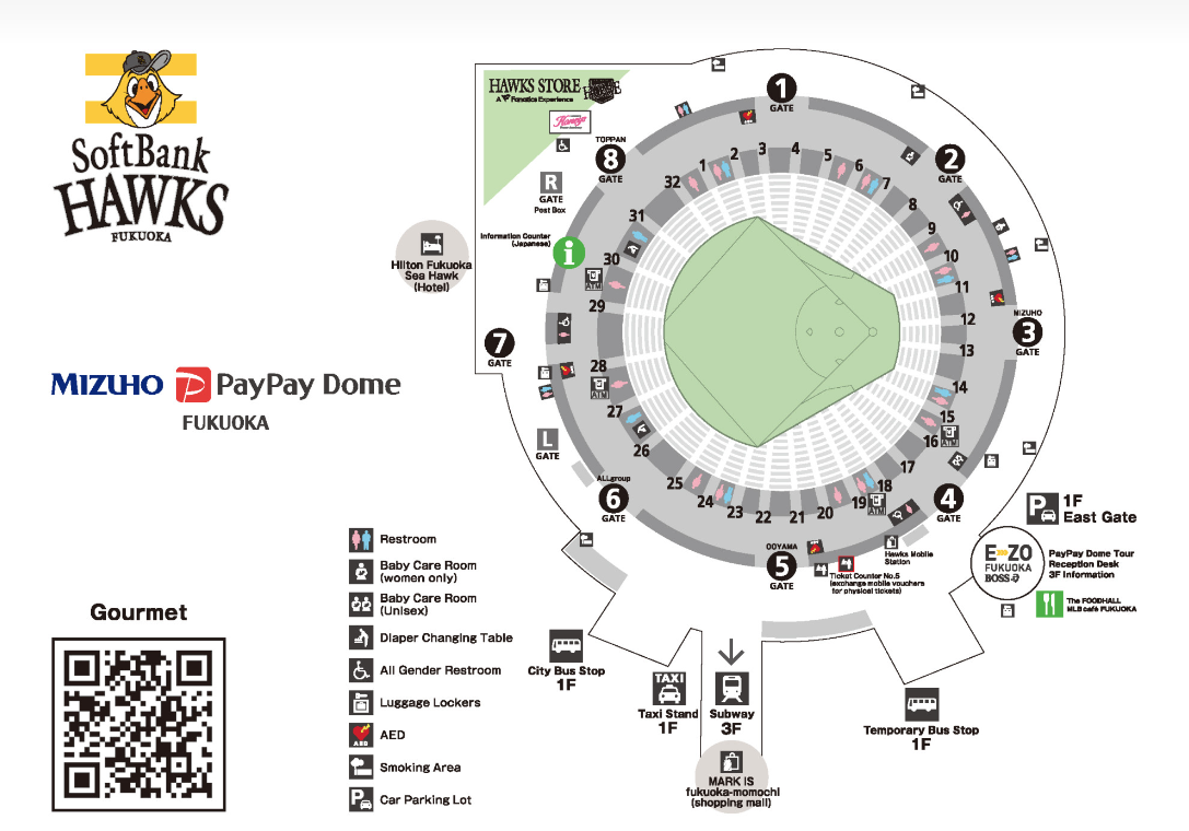 * Experience the live baseball game of Fukuoka SoftBank HAWKS, a Japanese professional team with a strong winning record!