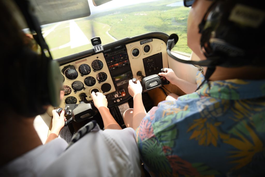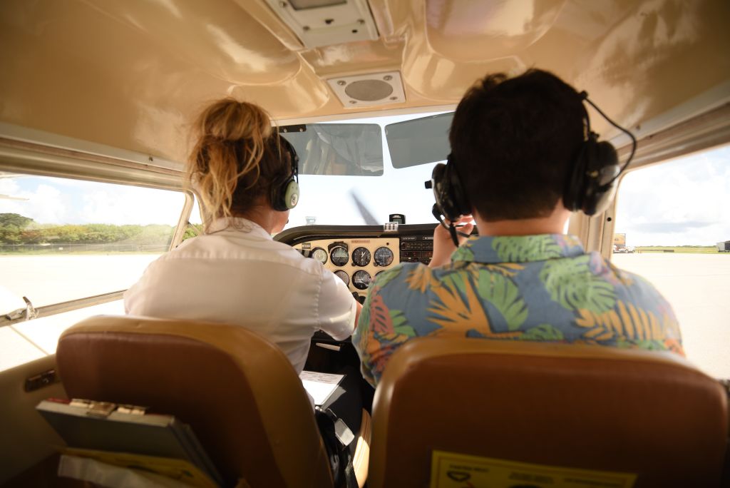 사이판 하늘 위로 경비행기를 직접 운전해 볼 수 있어요.