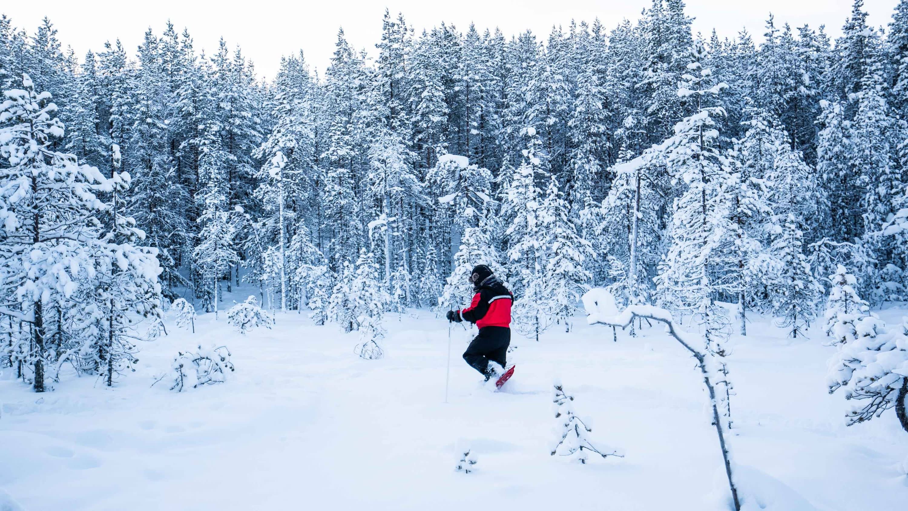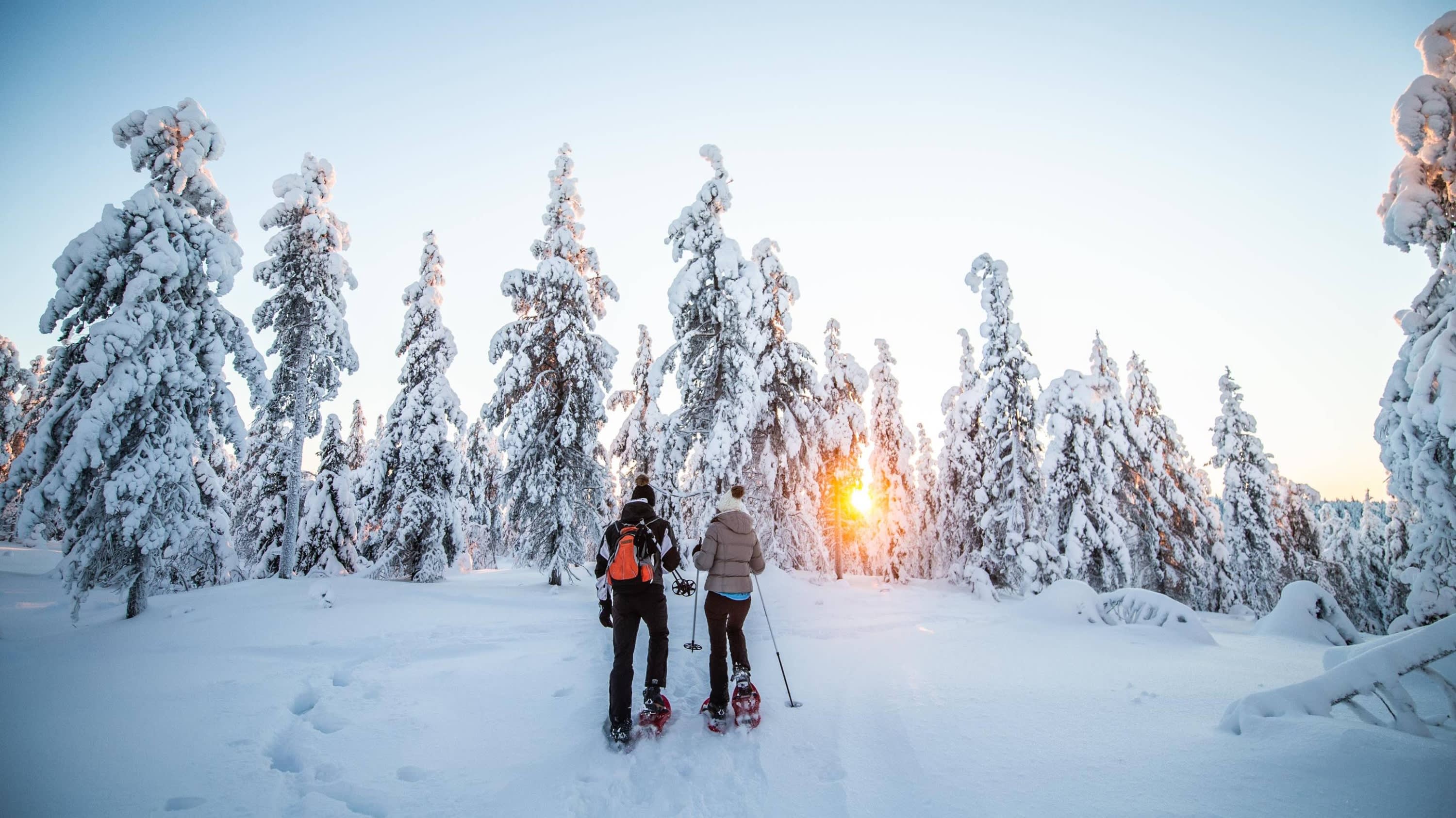 때묻지 않은 북극의 아름다운 숲을 탐험하는 특별한 스노슈 어드벤처를 경험해 보세요. 로바니에미에서 밴을 타고 깊은 숲 속 한적한 장소로 이동합니다. 깊은 눈 속 트레킹을 위해 설계된 프리미엄 스노슈를 착용하고 때 묻지 않은 황야를 가로지르는 가이드 하이킹을 떠나보세요.