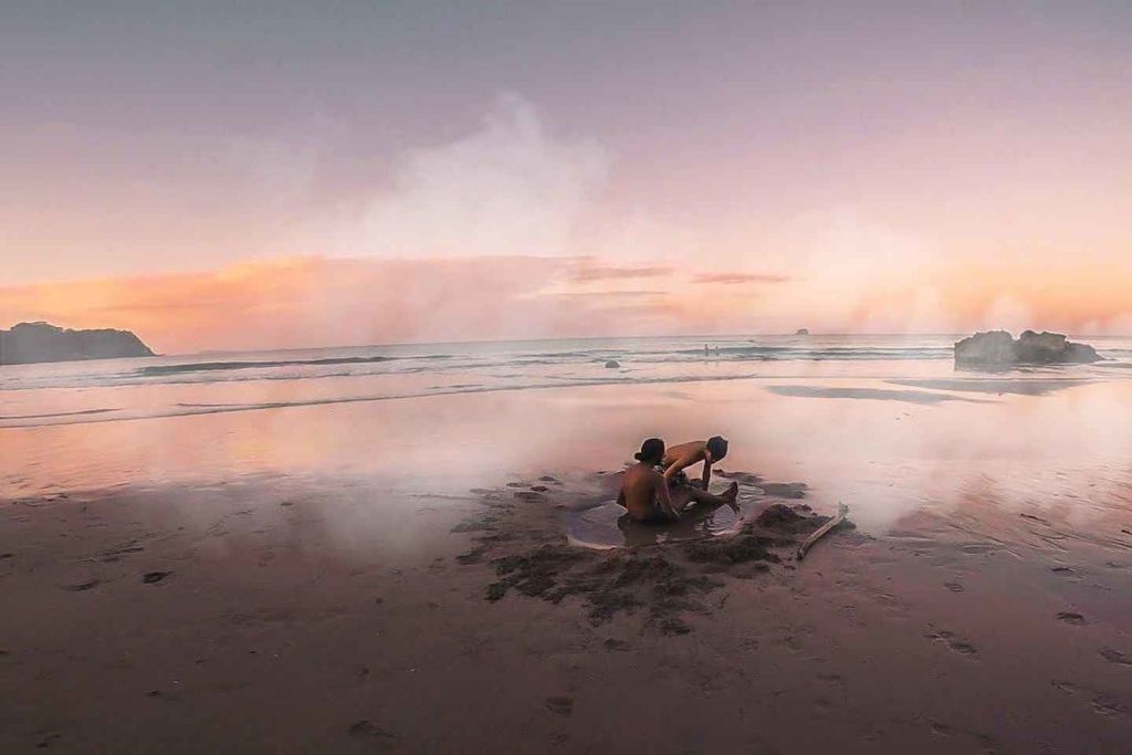 이곳에서 해변 카페에서 자비로 키위 스타일의 피크닉 점심을 먹어 보세요. 점심 식사 후에는 매우 특별한 지열 해변이자 세계에서 유일하게 지하에서 천연 온천수가 나오는 해변으로 세계적으로 유명한 핫 워터 비치로 향하세요. 모래에 나만의 스파 풀을 파고 해변에서 아름다운 해안선 전망을 감상하며 휴식을 취하세요.
