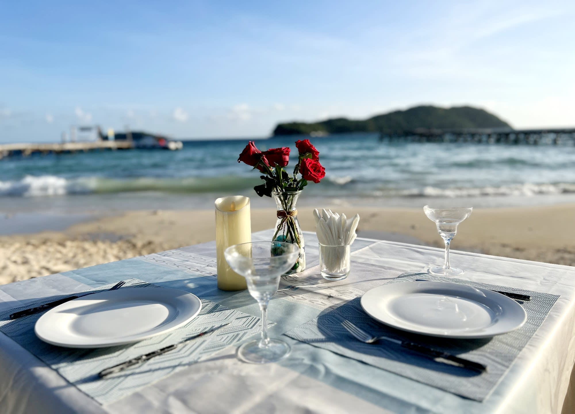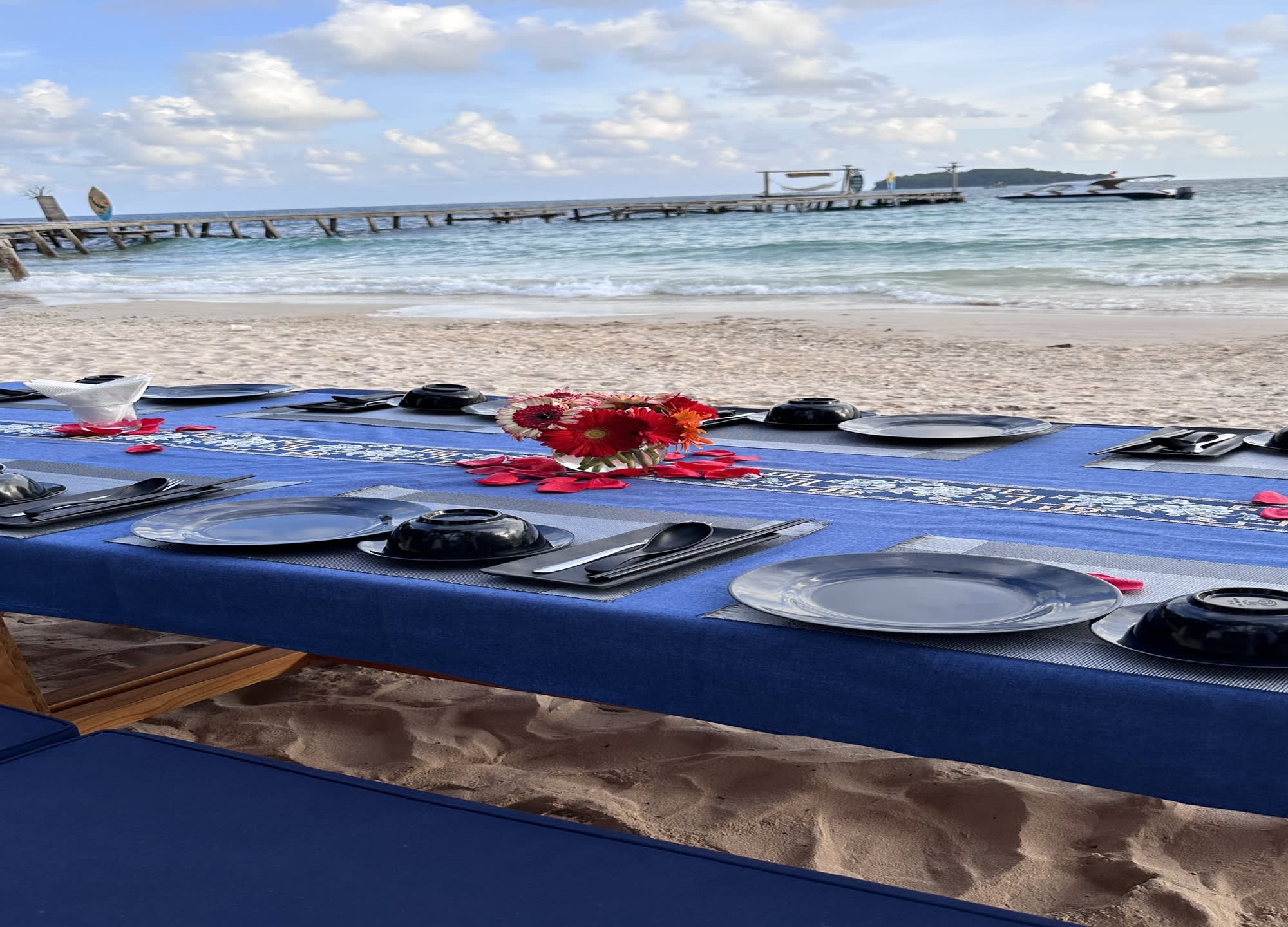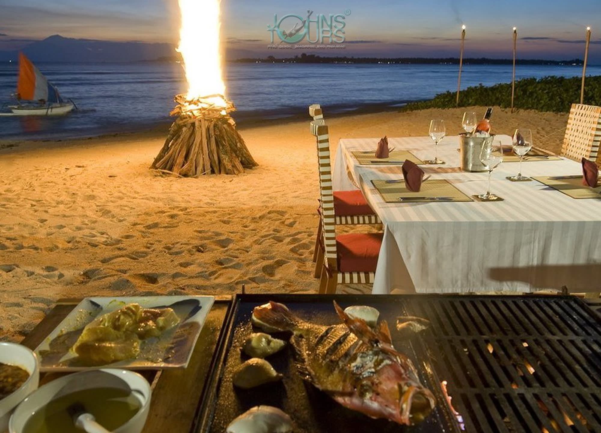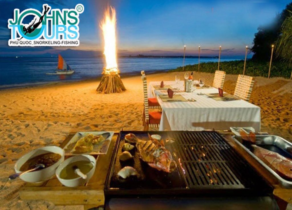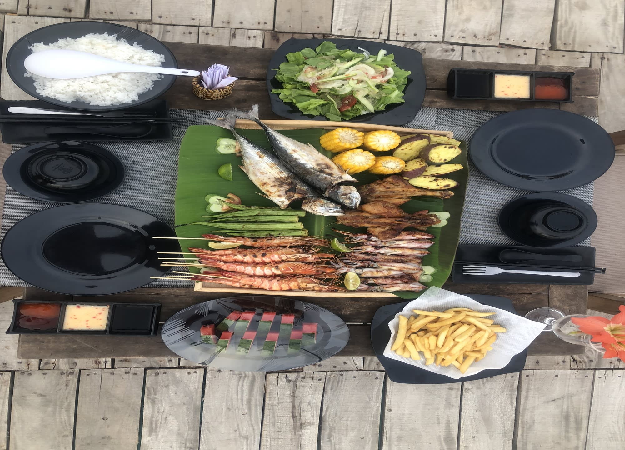 일몰을 감상하며 해산물 BBQ 식사를 즐길 수 있어요.