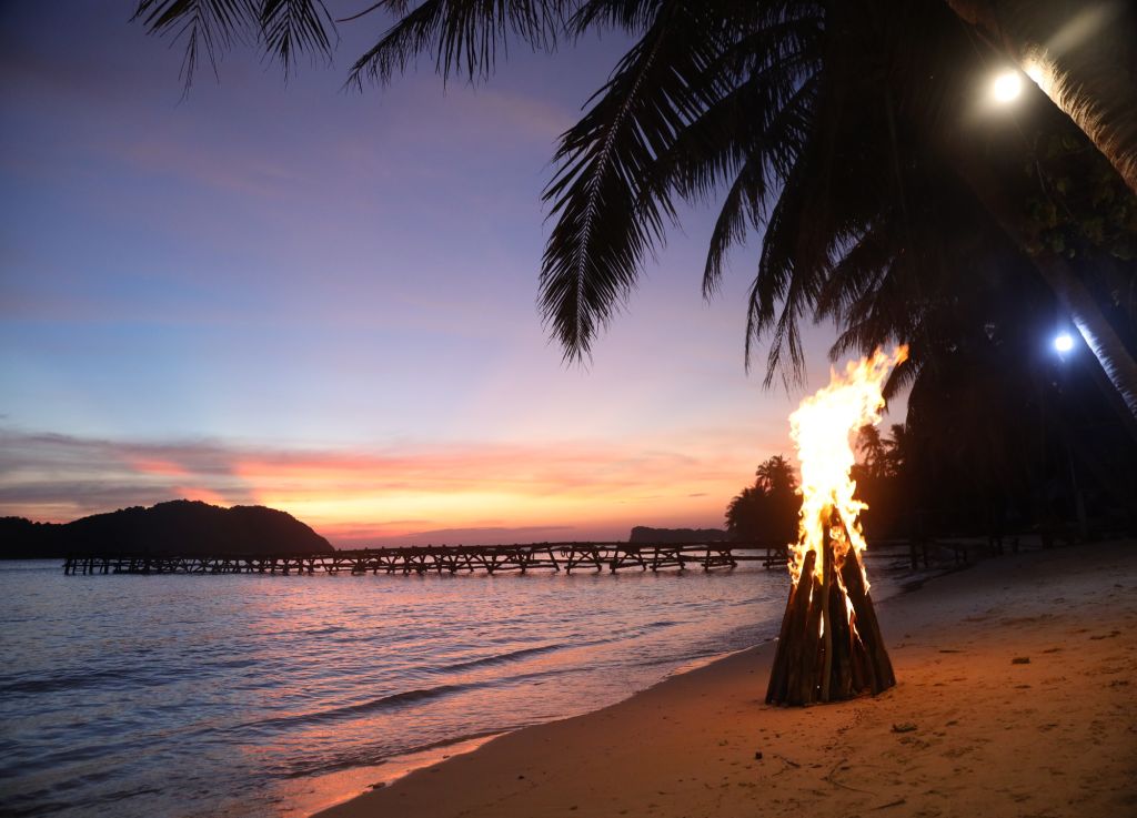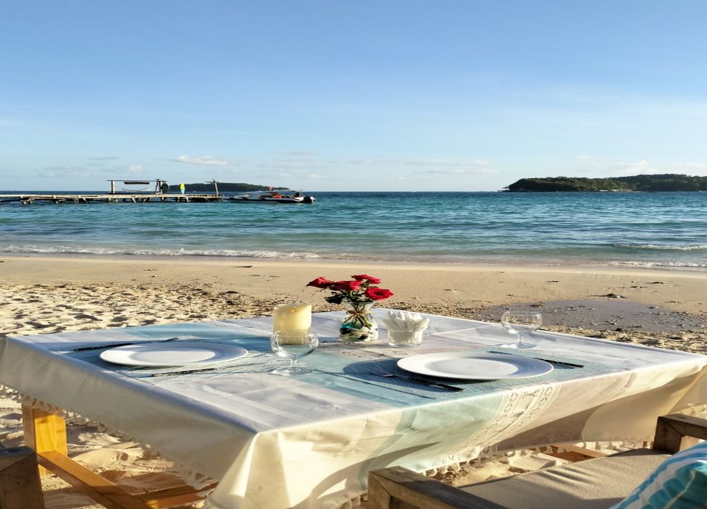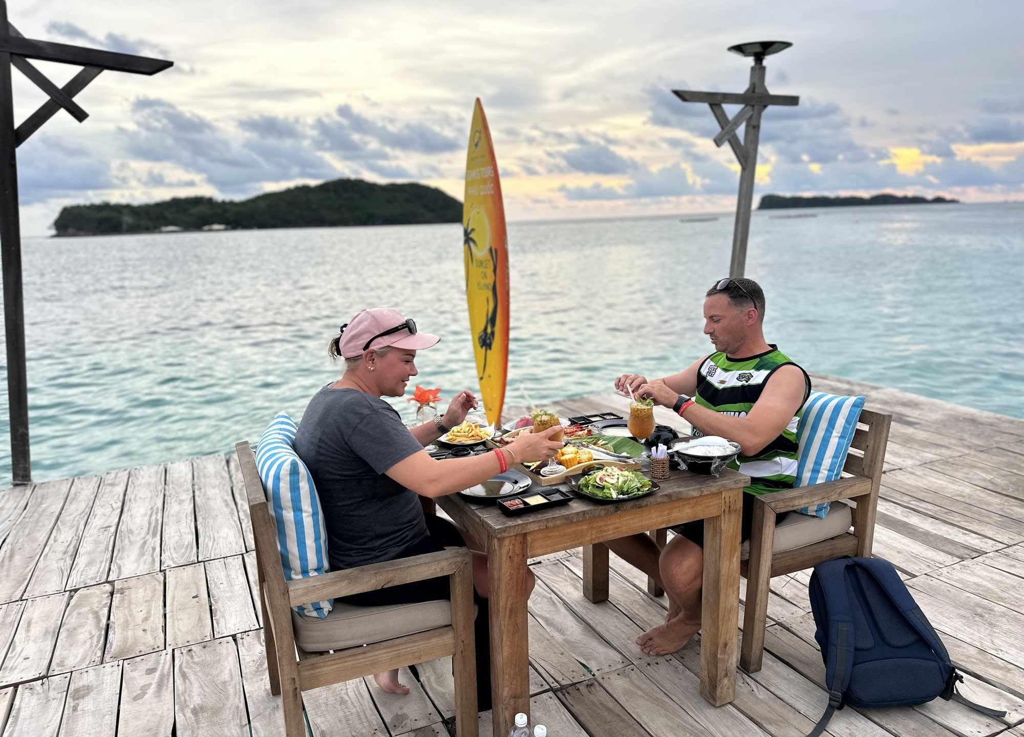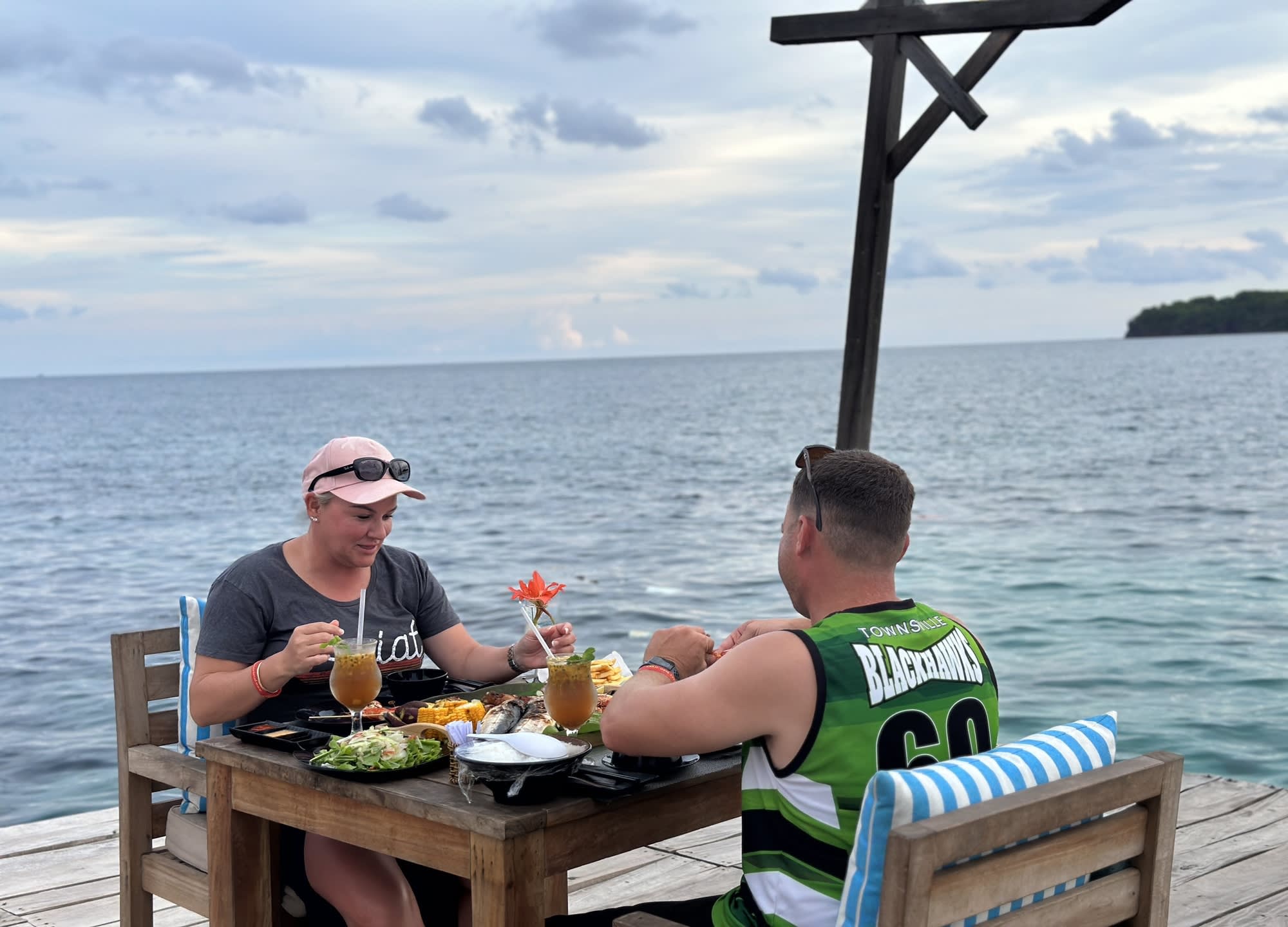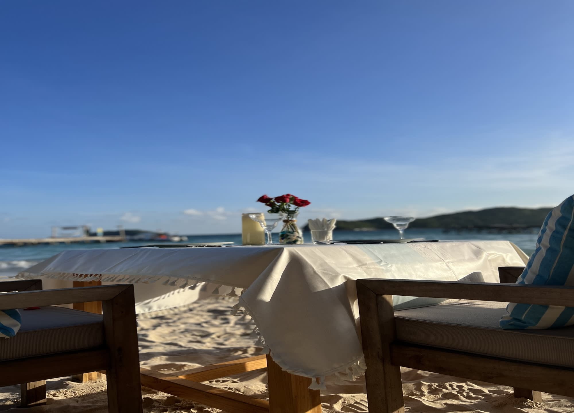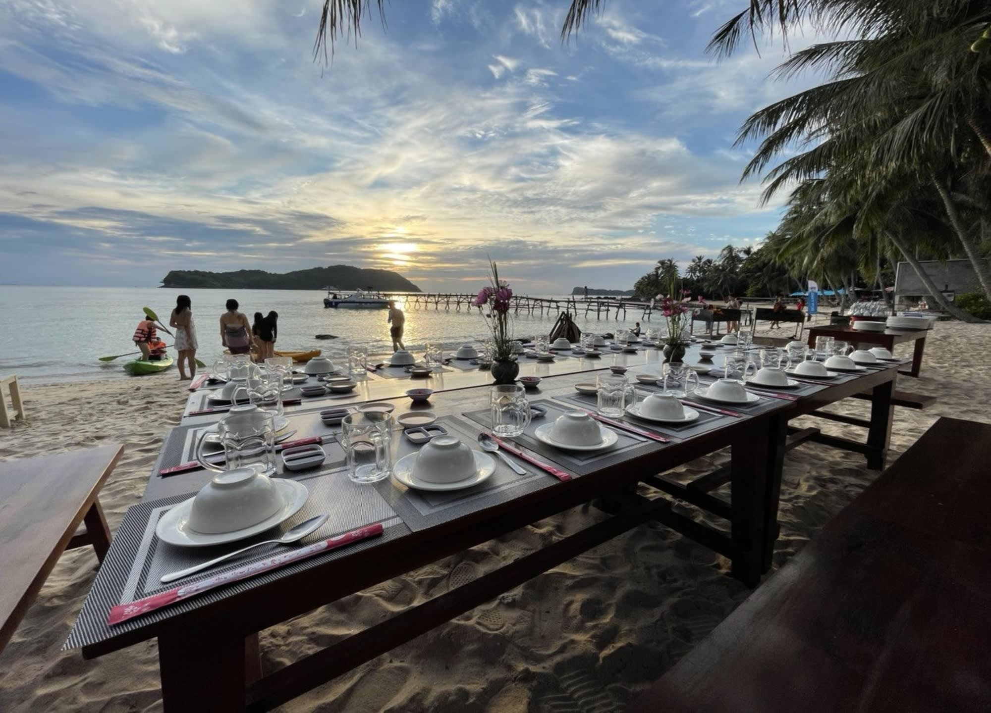 일몰을 감상하며 해산물 BBQ 식사를 즐길 수 있어요.
