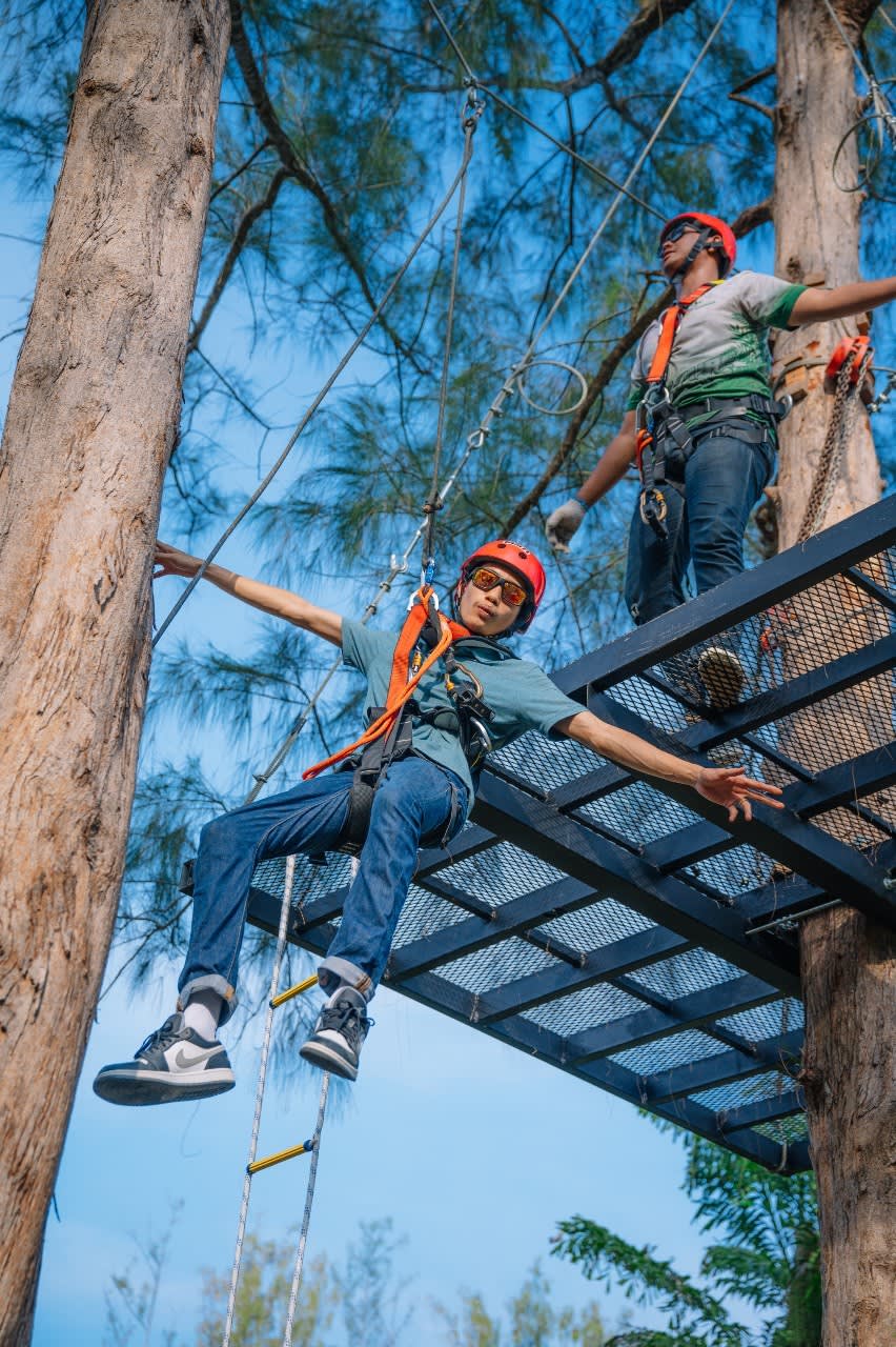 18개 플랫폼 – 활동 시간: 약 1시간 경로에 포함된 활동: 7개 짚라인 1개 스케이트보드 스테이션 5개 정글 다리 1개 계단 스테이션 2개 하강 지점 1개 사다리 1개 그물 건너기