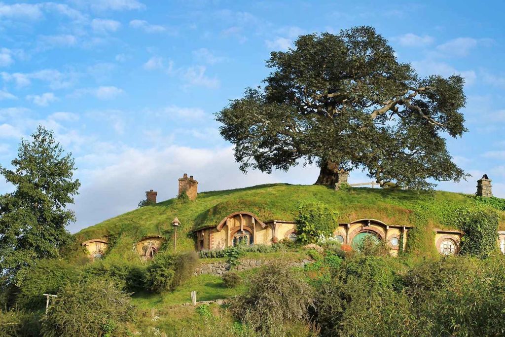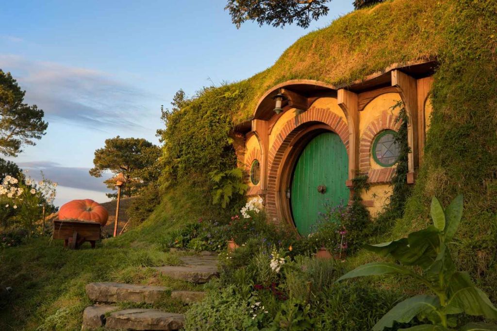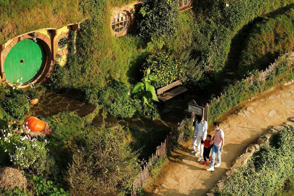 12에이커 규모의 오리지널 영화 세트장을 둘러보고 호빗 구멍 앞에 서 보세요.