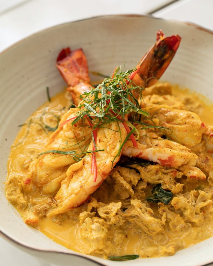 GAENG KEE LEK GAEM WUA TOON 카레에 코코넛 크림, 고등어, 바삭하게 말린 칠리를 곁들인 타친 스타일의 쇠고기 조림