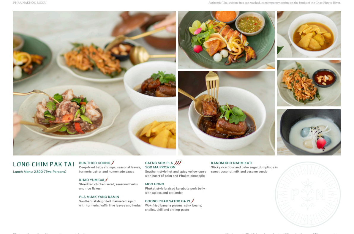 차오프라야강 바로 옆에 위치한 카펠라 방콕 (Capella Bangkok) 호텔에 있는 정통 태국 레스토랑 프라나콘 (Phra Nakhon) 레스토랑은 Kannika 셰프가 이끄는 곳으로, 세대를 거쳐 전해지는 가족 요리법을 포함하여 태국의 다양한 지역에서 영감을 받은 요리를 기대할 수 있습니다.