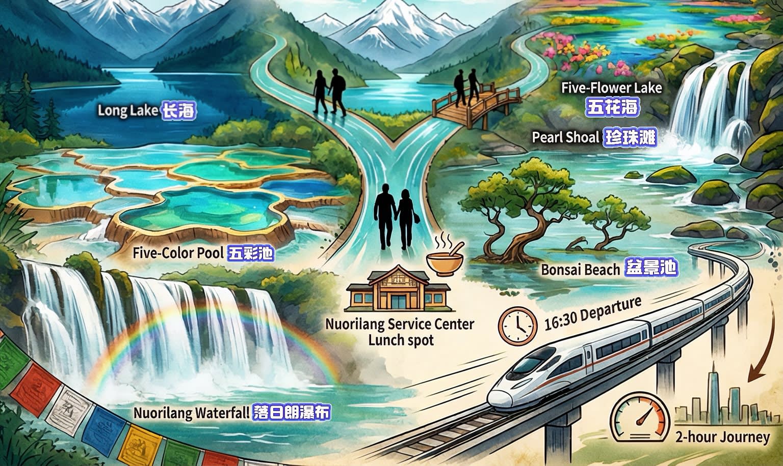 * 🚗🚄 완벽한 교통편: 청두→구채구, 비즈니스 차량으로 구면 고속도로 이용(약 5시간, 중간에 경치 감상 및 휴식), 돌아오는 길은 고속 열차로 2시간 직행, 중국의 빠른 속도를 경험하며 시간 절약, 순환선으로 되돌아가지 않음~