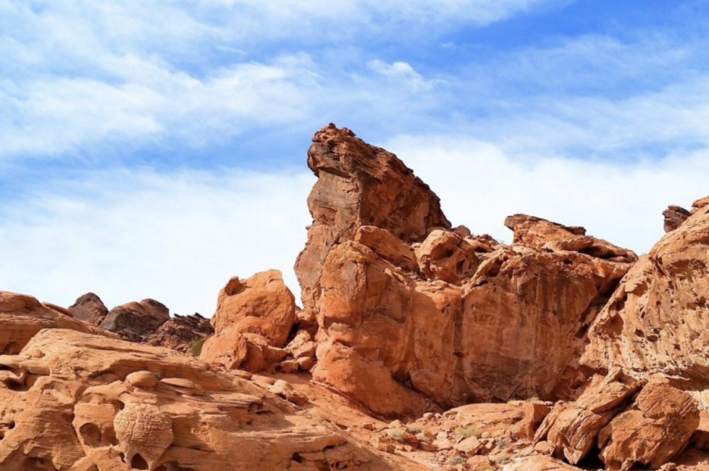 네바다 주에서 가장 오래된 주립공원입니다. 1935년에 주립공원으로 지정되었고 1억 5천만 년 전에 생성된 붉은 사암과 사구로 이루어져 있는 것이 특징입니다 햇빛을 반사할 때면 불이 타고 있는 것처럼 보인다고 하여 '불의 계곡(Valley of Fire)'이라 불리게 되었습니다.
