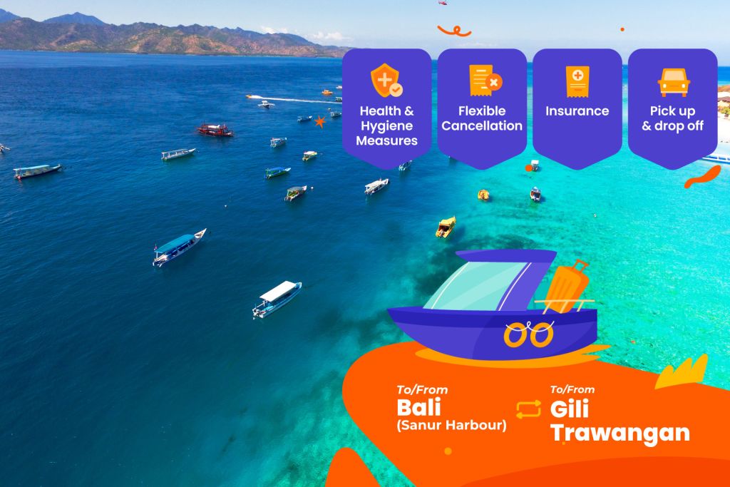 * 발리에서 길리 트라왕안으로, 누사 페니다로 이동하는 쉽고 빠른 여행을 에어컨이 완비된 현대적인 페리를 타고 경험해보세요.