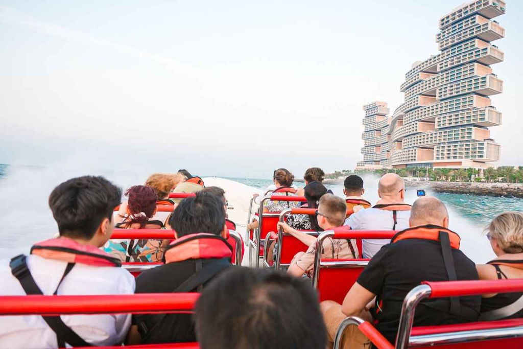 도중에 블루워터 아일랜드, 인상적인 아인 두바이 등을 둘러보실 수 있습니다. 잠시 정차하여 그림 같은 순간을 포착하고 바다 위에서 두바이 스카이라인의 멋진 파노라마 사진을 찍으세요. 두바이의 가장 유명한 랜드마크를 독특하고 짜릿하게 체험할 수 있는 이 짜릿한 투어를 놓치지 마세요!