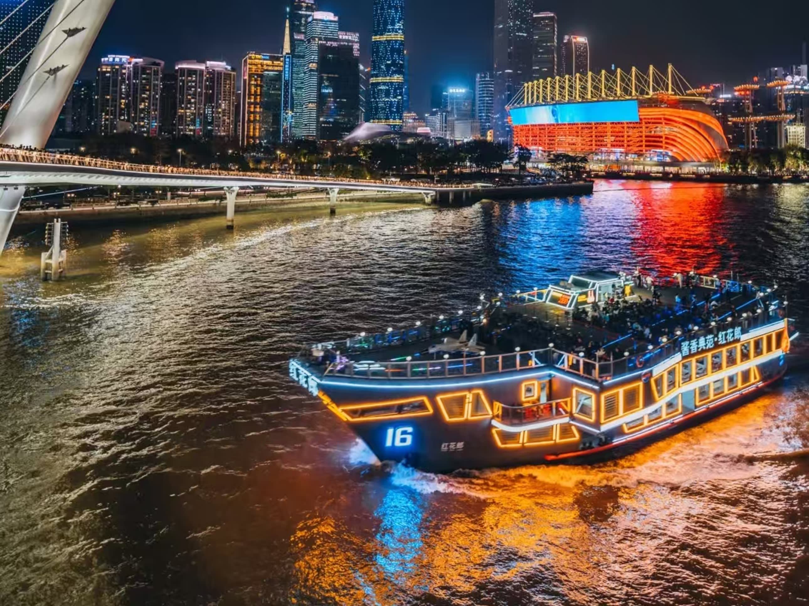 * 여정은 광저우 타워, 하이신교, 대원수부 등 관광 명소를 연결하며, 낮의 경치와 밤의 네온사인이 서로 빛을 발하여 주강의 푸른 물결 위에서 역사 건축물과 현대 도시의 충돌을 목격하고 광저우 도시의 풍경을 전방위적으로 감상할 수 있습니다.