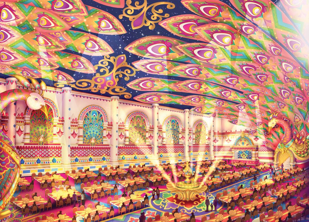 화려한 공작무늬로 꾸며진 뷔페 레스토랑에서 다양한 음식을 맛보실 수 있습니다.