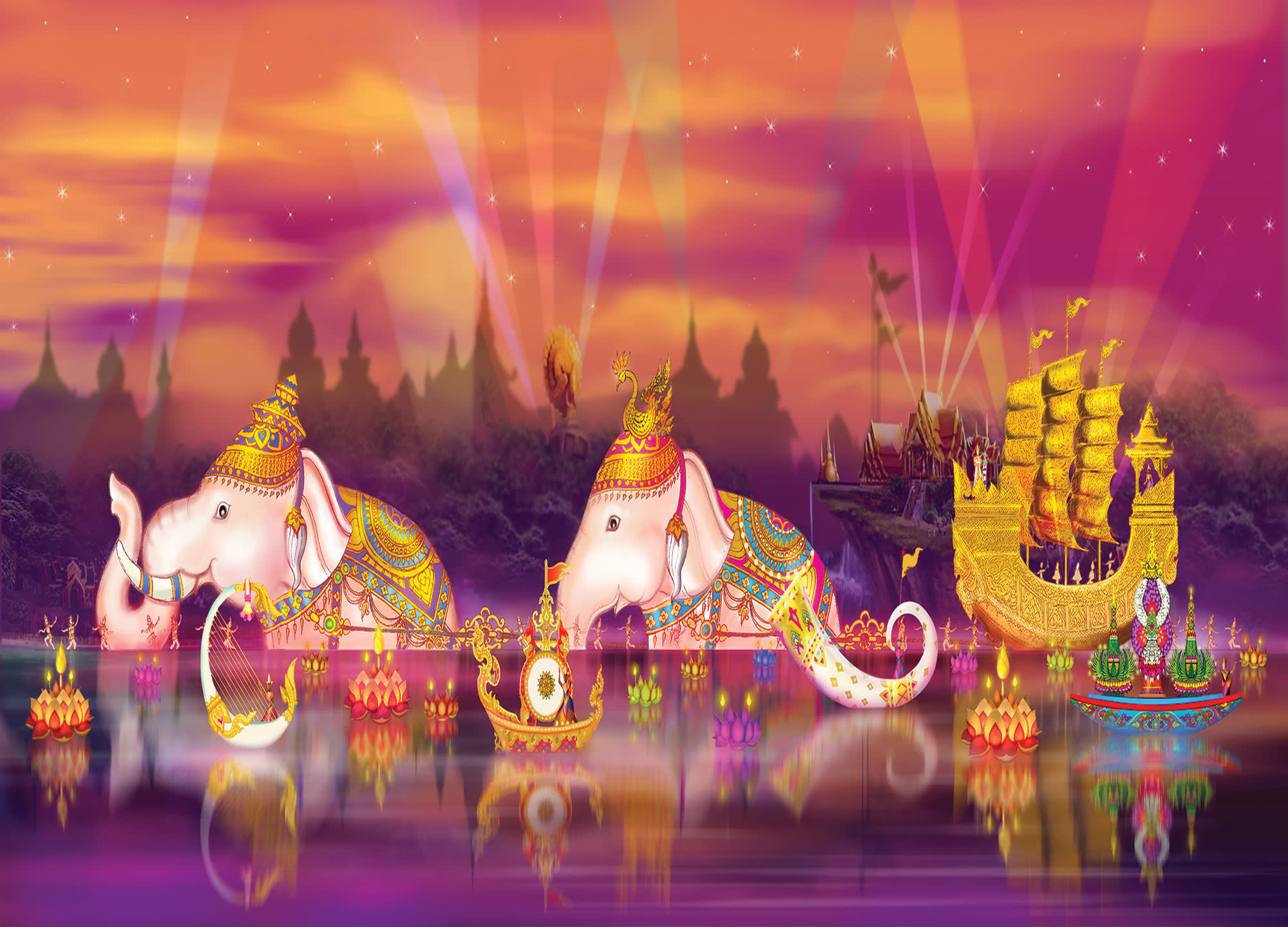 디너 뷔페, 화려한 리버 카니발 퍼레이드 쇼와 킹덤 오브 라이트까지 다채롭게 즐기실 수 있습니다.