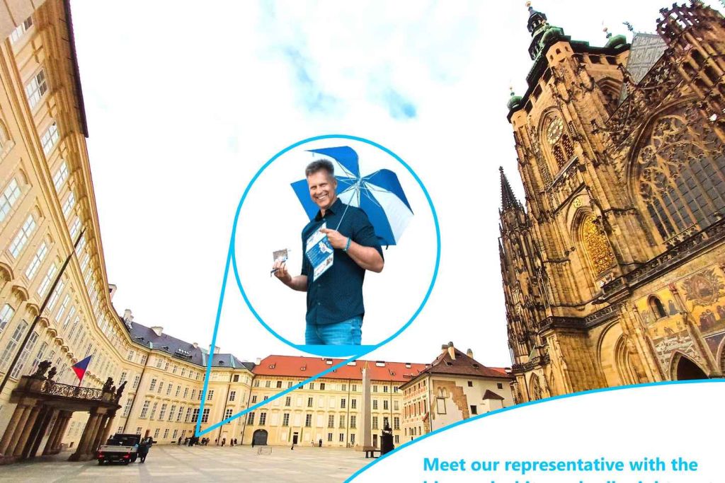 성 비투스 대성당 앞에서 담당자를 만나서 방문을 시작하세요. 담당자가 간단한 소개(영어)와 함께 티켓 및 성 단지 내 오리엔테이션에 대한 필요한 정보를 제공할 거예요. 또한 전체 단지의 지도를 받으실 수 있습니다.
