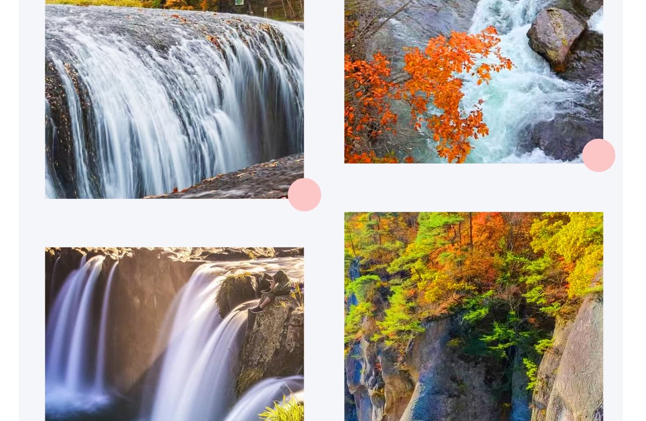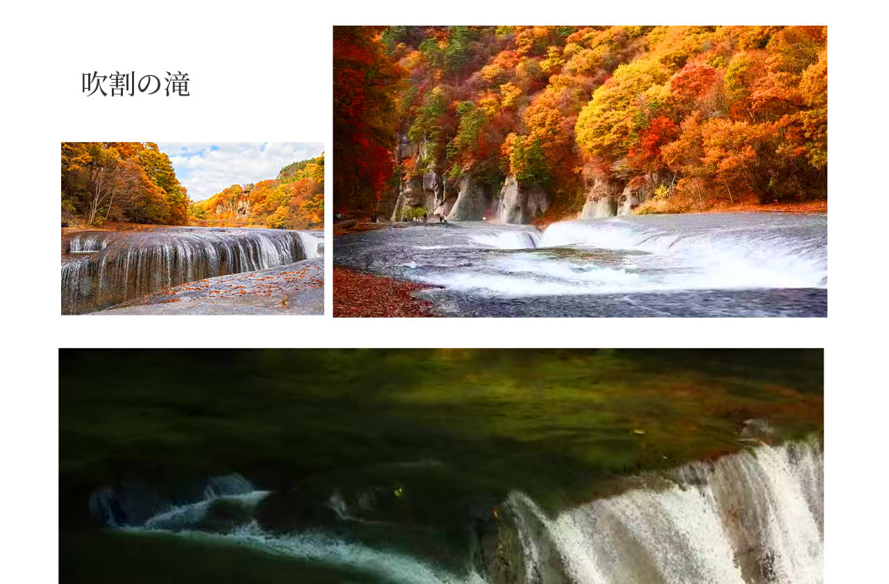 첫 번째 코스|후키와레 폭포 (폭포 봉쇄 기간에는 가와고에 이치반가이로 이동) '동양의 나이아가라'라고 불리는 이곳은 가을에는 단풍이 폭포와 어우러져 그림 같은 풍경을 연출하고, 겨울에는 눈과 얼음으로 뒤덮인 폭포의 독특한 풍경을 감상할 수 있으며, 여름에는 더위를 피하기에 좋은 곳입니다. 12월 4일부터 후키와레 폭포가 겨울철 봉쇄에 들어가 육각당에서 멀리서만 볼 수 있고 계단이 미끄러워 위험하므로, 12월 7일부터 2026년 4월 1일까지는 가와고에 이치반가이로 이동합니다.두 번째 코스|하라다 농원 과일 수확
