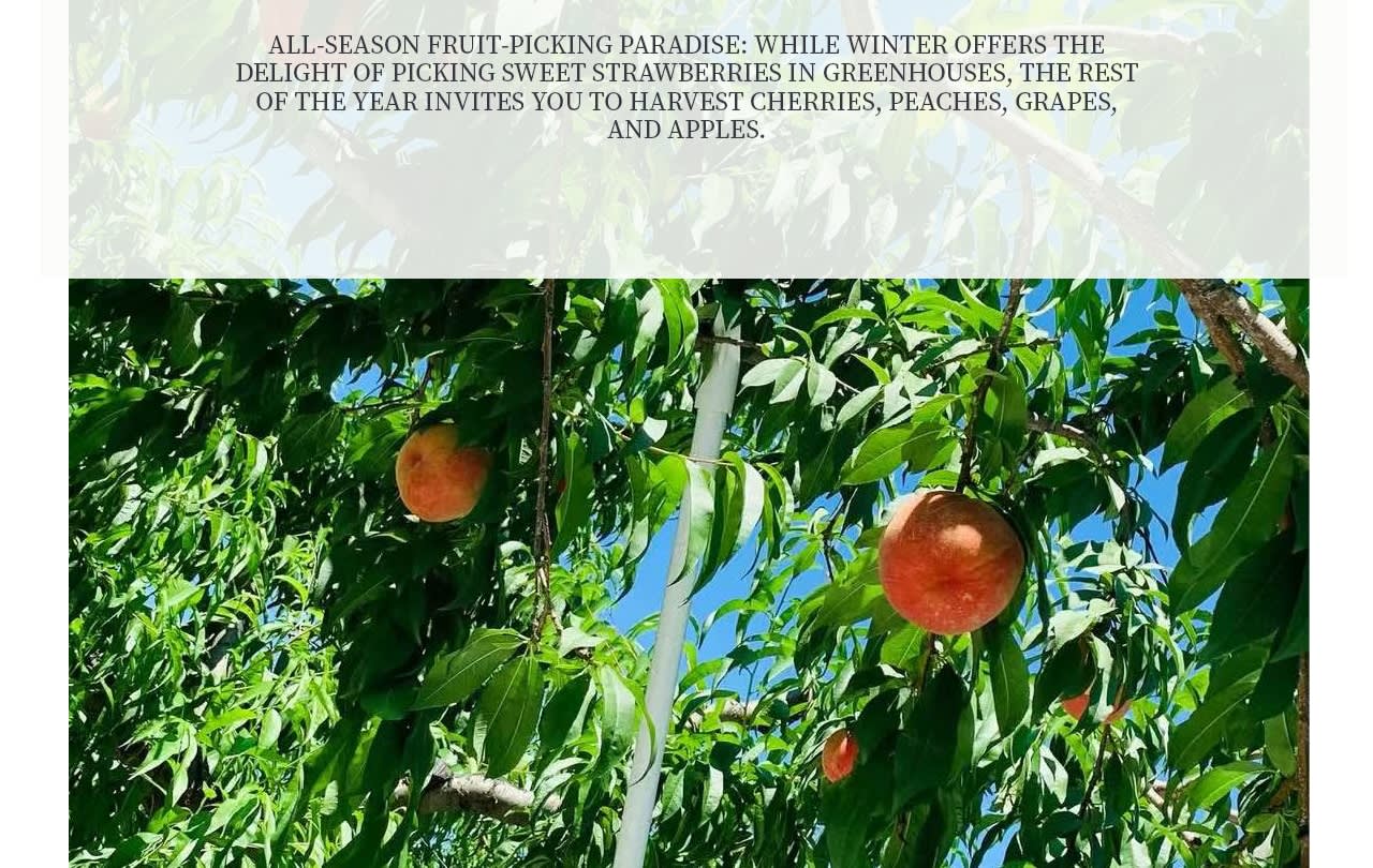 제철 과일을 직접 수확해보세요. 여름에는 체리, 가을에는 사과, 겨울에는 딸기를 딸 수 있습니다. 아이들이 가장 좋아하는 곳이며, 어른들도 신선하고 달콤한 맛을 즐길 수 있습니다. 세 번째 코스|계절 한정 체험
