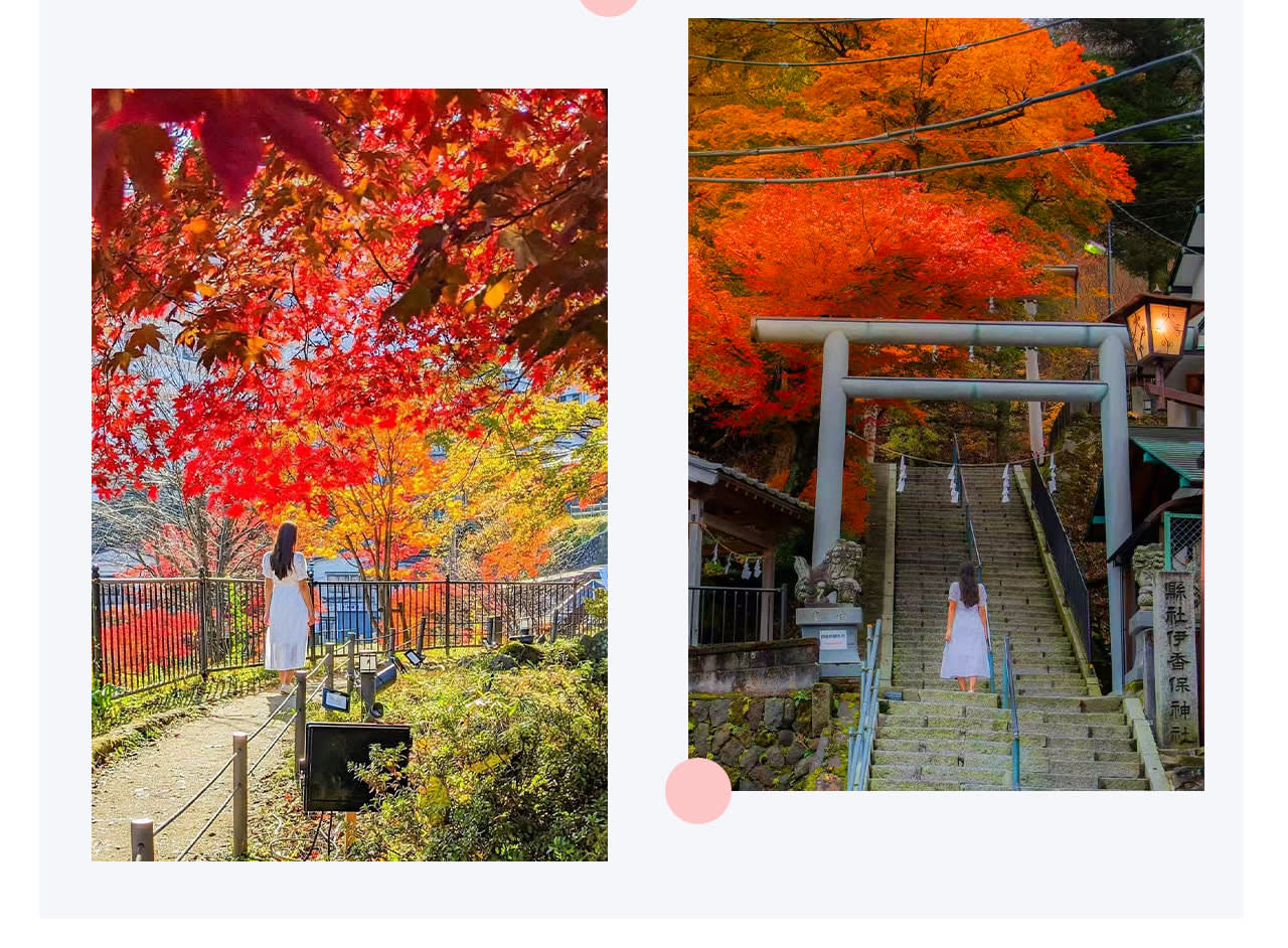 4월 6일~6월 30일, 9월 1일~12월 19일|이카호 온천 돌계단 거리: 단풍으로 둘러싸인 돌계단 마을에서 맛있는 음식을 맛보며 거닐다가 마지막에는 온천에 몸을 담가 따뜻하게 몸을 녹이세요.