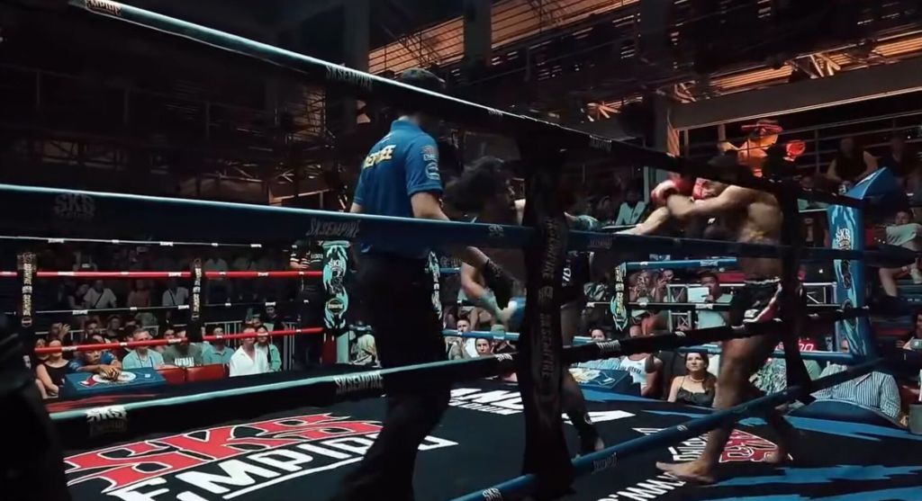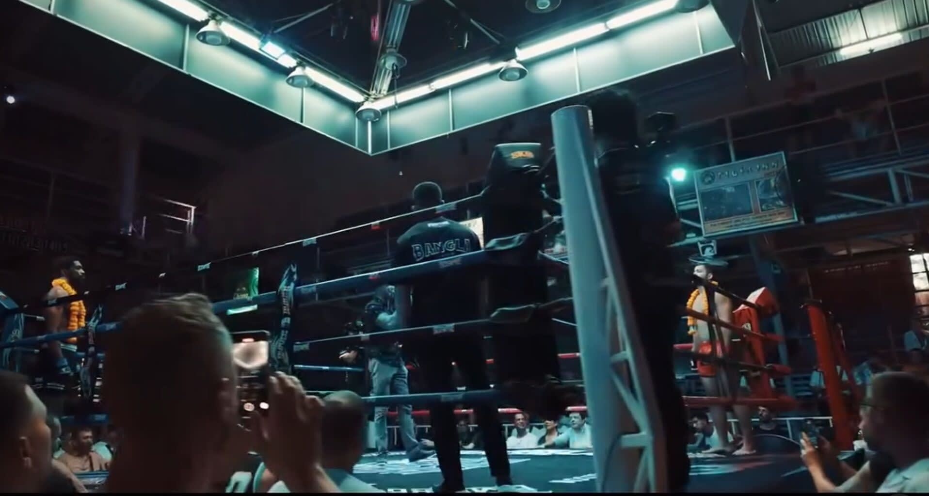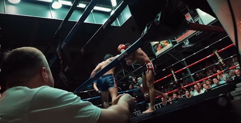 네온 불빛 아래 링 위에 선 선수들은 번개처럼 빠른 공격과 박력 있는 발차기로 관중을 압도하며,