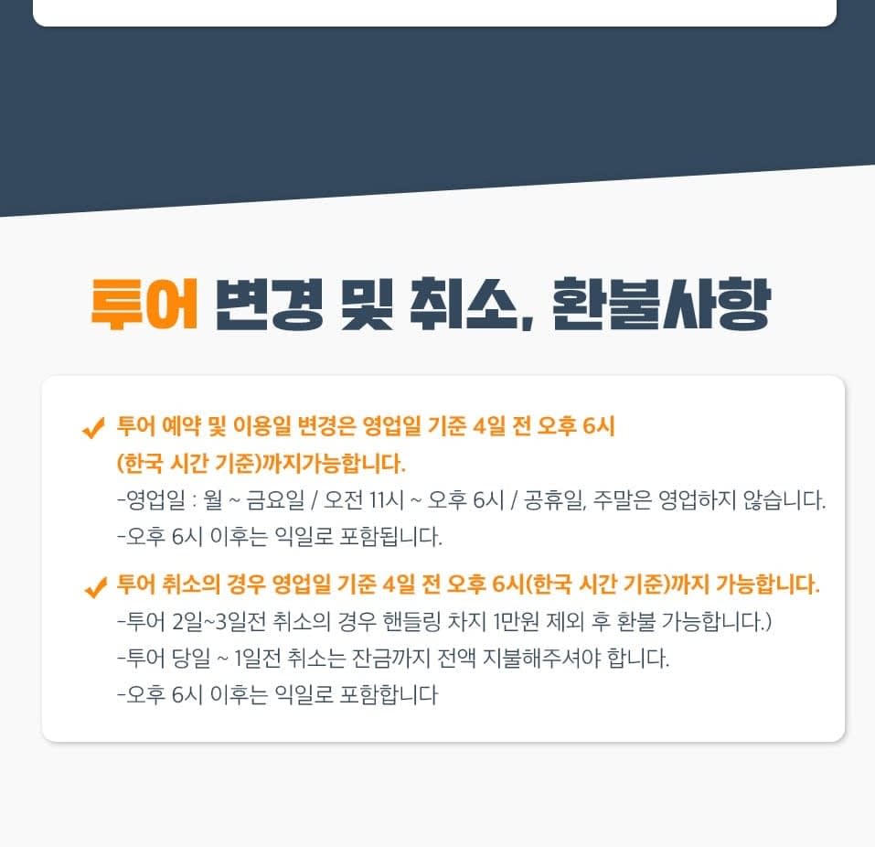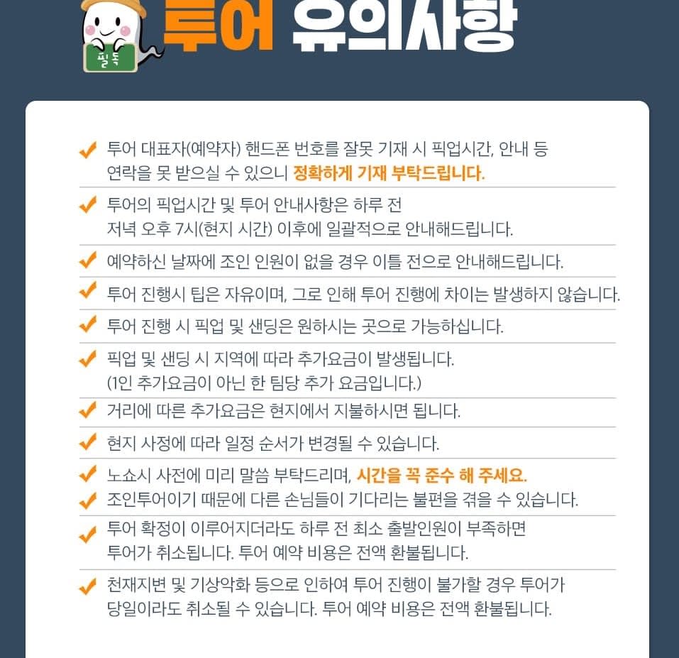 * 카카오채널로 연락주셔야 예약확정 가능하니 반드시 예약시에는 해당 카카오 채널로 연락바랍니다. (카톡검색시 @다낭고스트투어) * 베트남 국/공휴일에는 인건비, 차량비 등이 인상되는 관계로 추가금(현지지불 등)이 발생될 수 있습니다.
