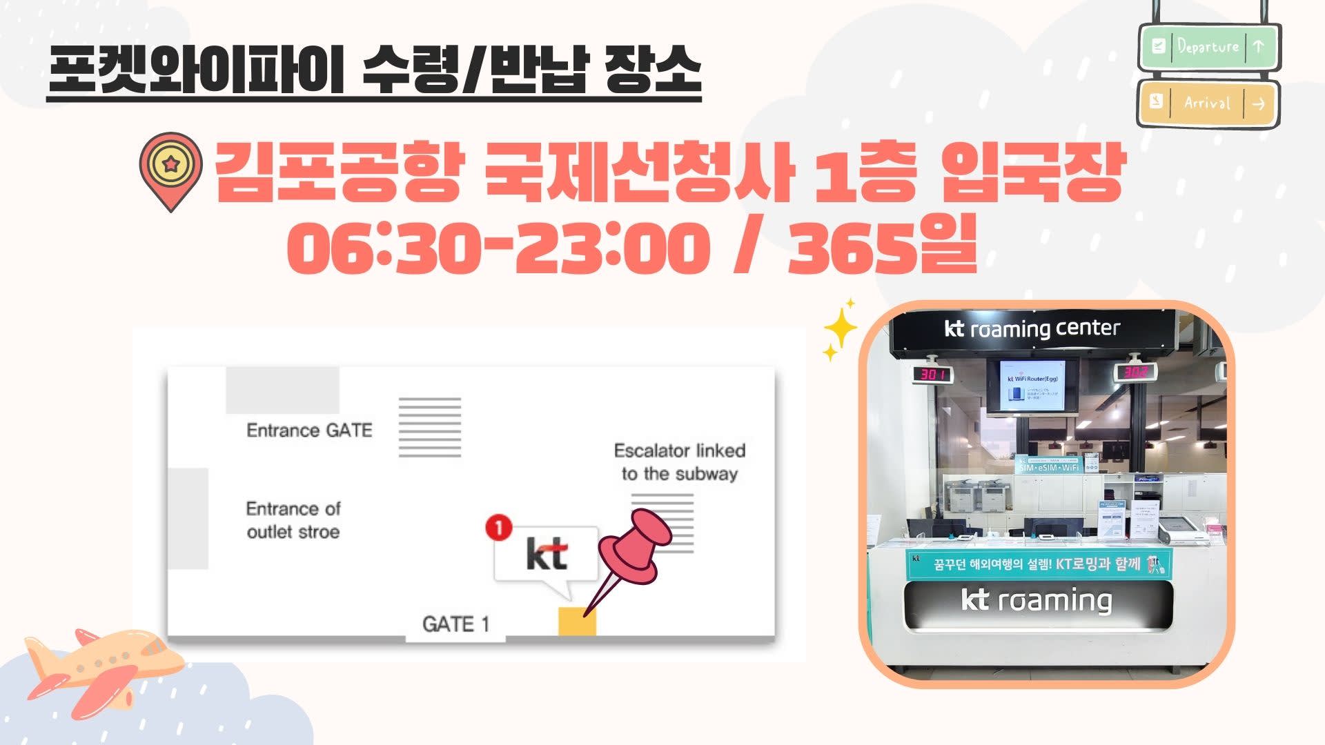 ⑥ 김포공항 국제선 청사 1층(입국장) 1번 출입구 옆 KT 로밍센터 : 06:30~23:00 / 365일
