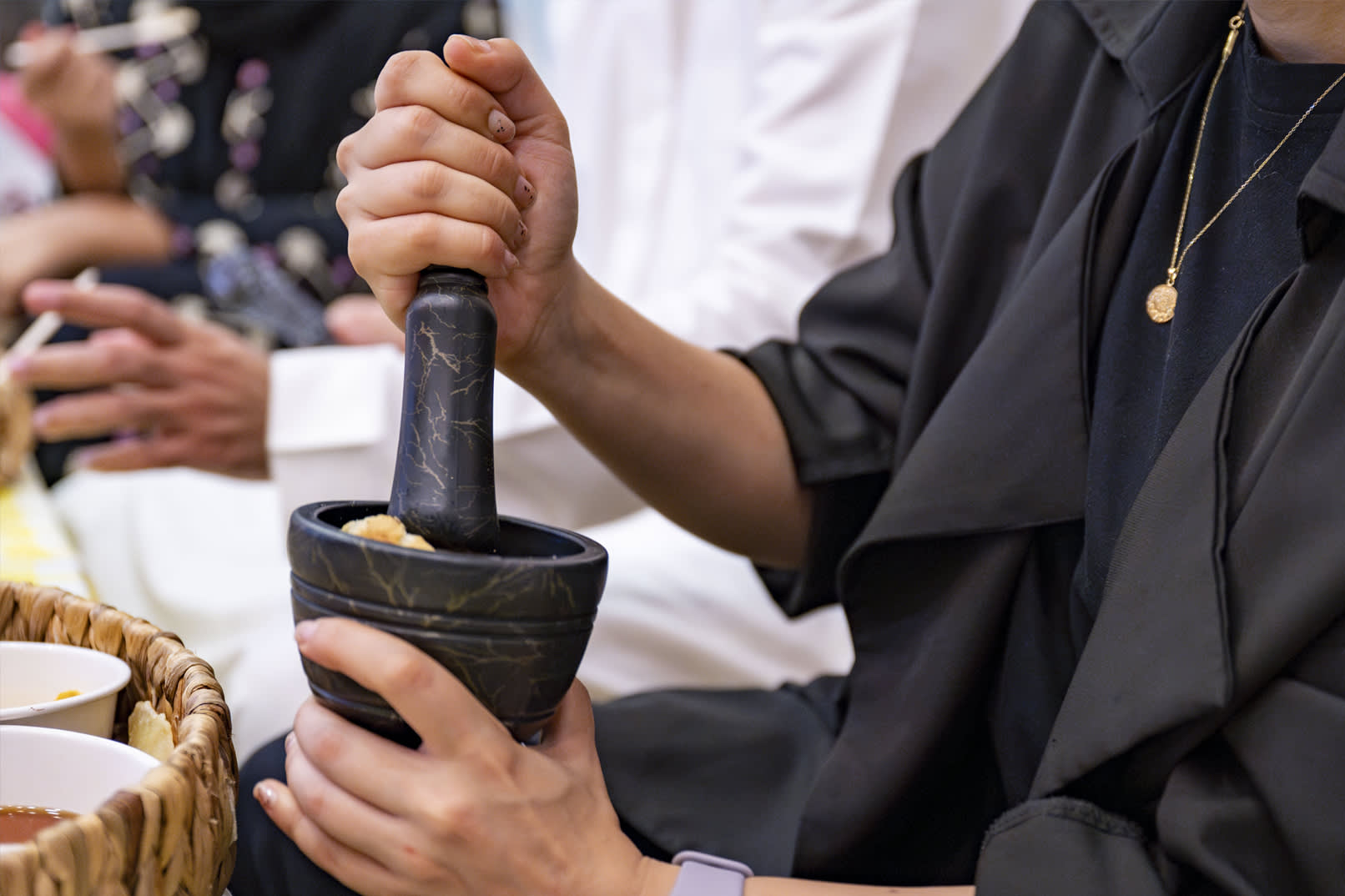 제다 알 발라드 중심부에서 즐거운 미식 여행을 떠나 과거의 이야기가 속삭이는 역사적인 거리를 거닐어 보세요. 헤자즈 요리의 풍미를 만끽하고 현지 향신료의 독특한 향을 탐험해 보세요. 헤자즈 타팀마는 절인 가지 "막두스"와 헤자즈 미쉬와 같은 다양한 치즈와 가벼운 스낵입니다. 바나나를 빵가루, 크림, 꿀과 함께 으깨어 만든 달콤한 맛의 유명한 헤자즈 요리인 마수브를 맛보세요. 다양한 재료로 채워진 얇은 반죽 층을 석쇠에서 바삭하게 구워낸 모타바크 페이스트리는 맛있는 바삭함을 선사합니다. 맥아로 만든 전통 수비아 음료로 상쾌함을 더해보세요. 특별한 향신료로 맛을 낸 독특한 풍미의 파투트 빵으로 맛있는 경험을 완성하세요.