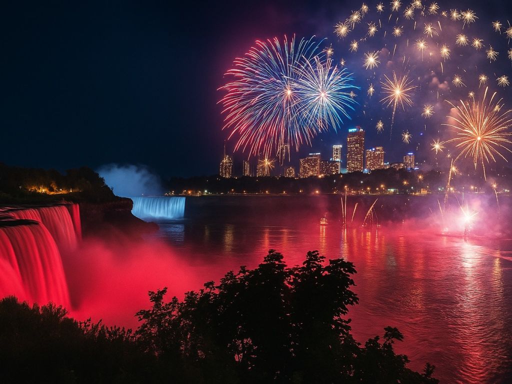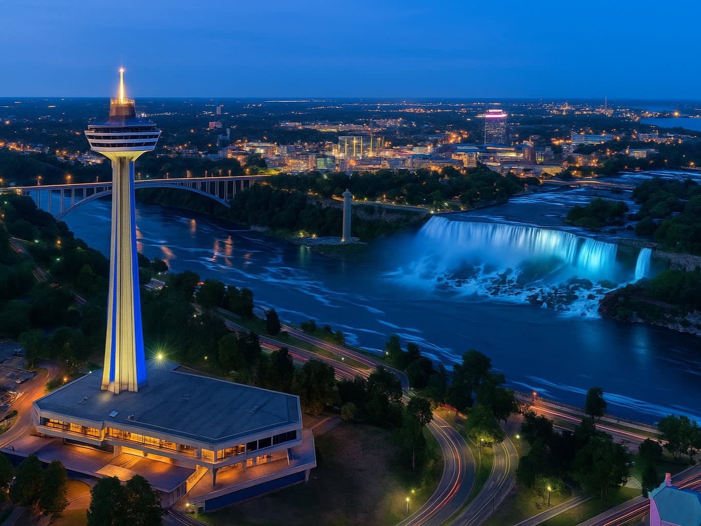 나이아가라 폭포 불꽃놀이, 폭포 야경 & 스카일론 타워 도보 투어