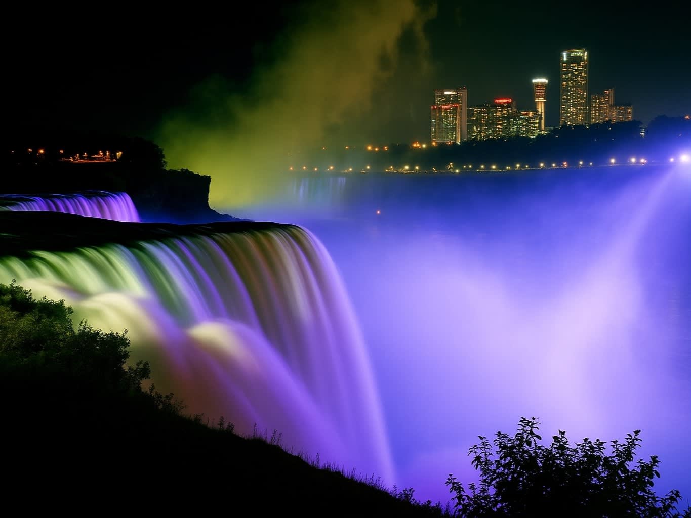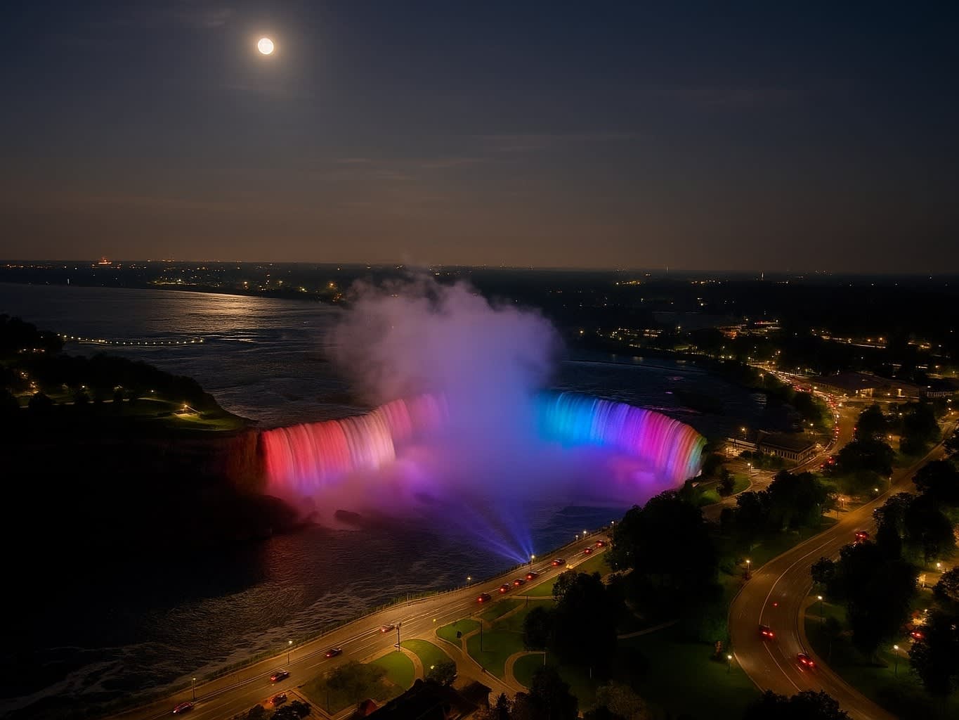 * 밤에는 캐나다 폭포와 미국 폭포의 아름다움을 모두 경험하세요.