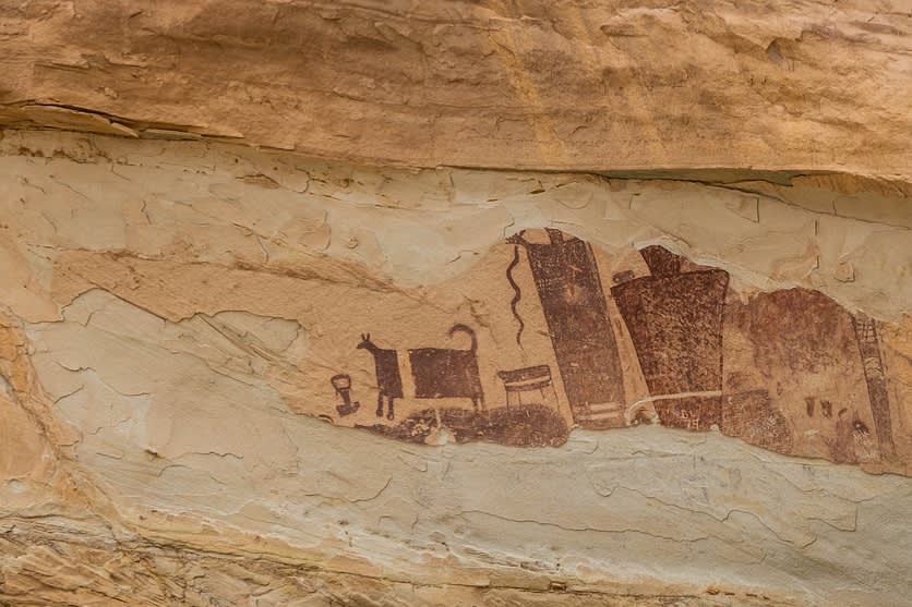 * 템플 마운틴 암각화 패널에서 고대 배리어 캐니언 스타일의 예술을 탐험해보세요.
