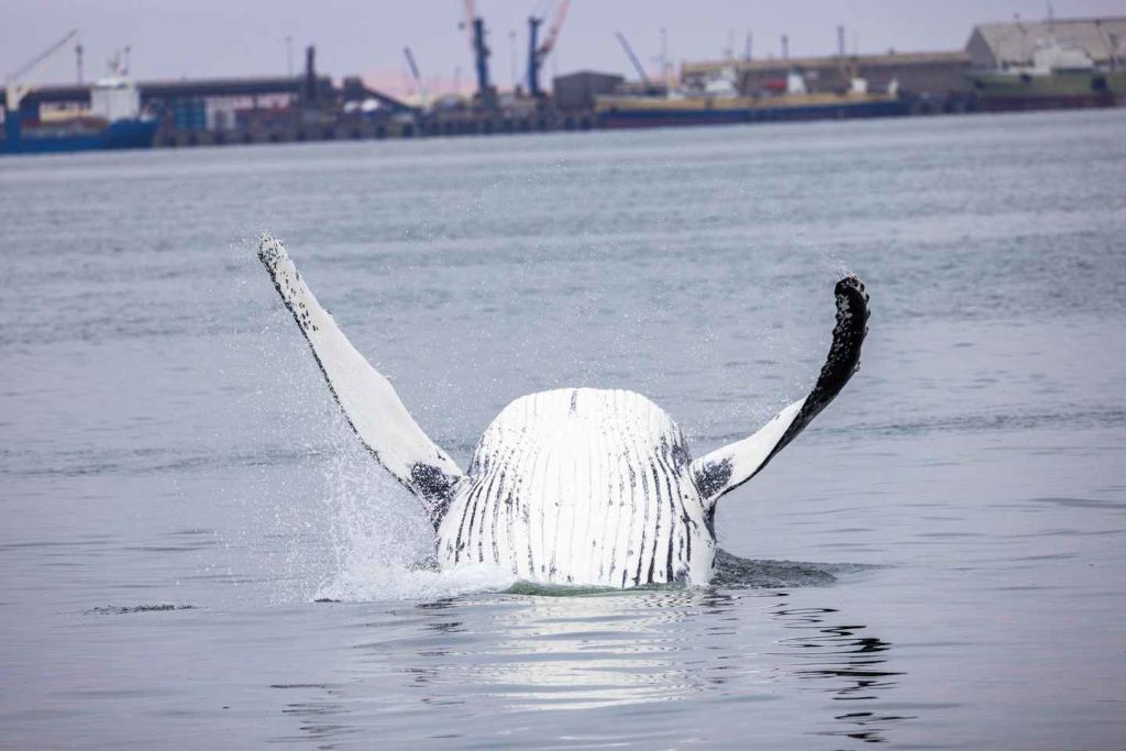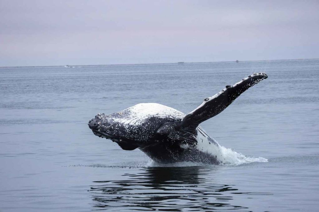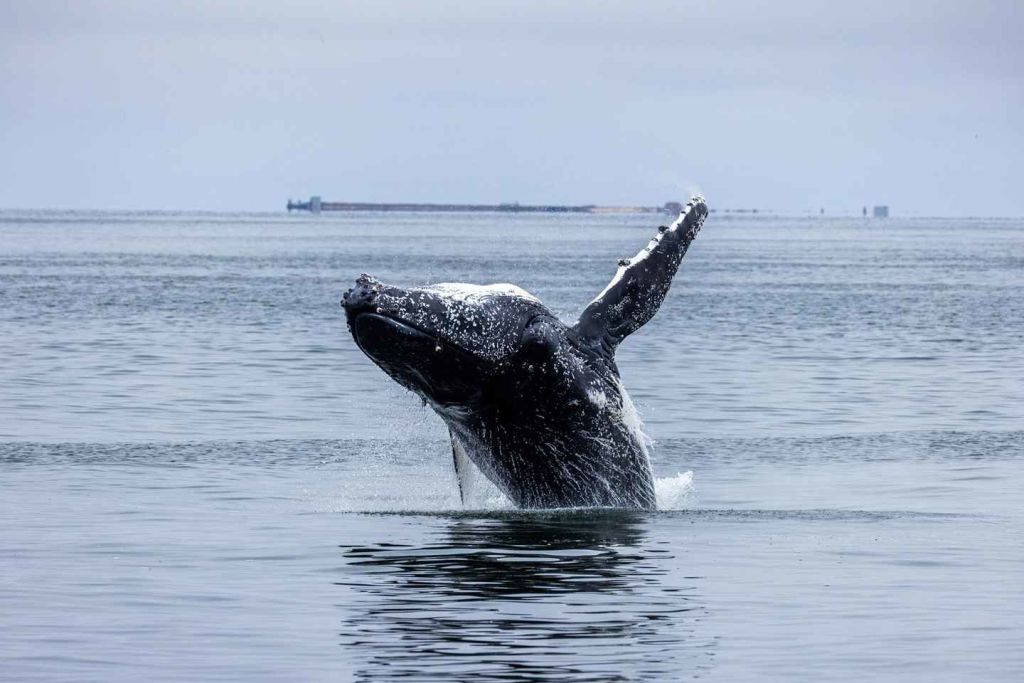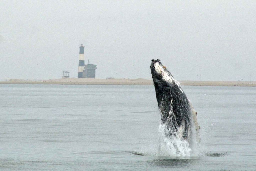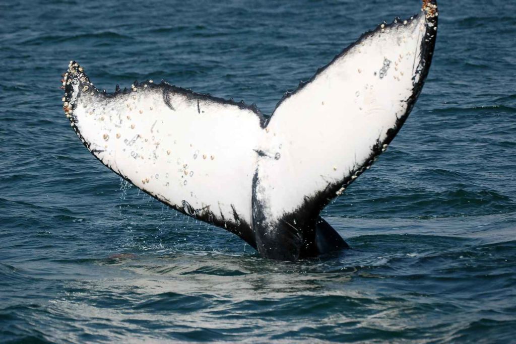 이 지점을 지나 탁 트인 바다로 향합니다. 7월부터 11월 사이에는 남방긴수염고래와 혹등고래 같은 대형 포유류를 종종 볼 수 있으며, 회색고래와 피그미고래 같은 다른 고래 종도 종종 모습을 드러냅니다.