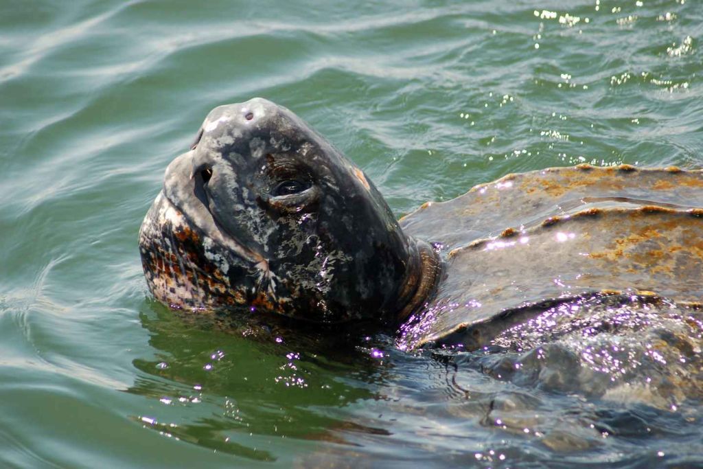 가죽등 거북은 살아있는 거북이 중 가장 큰 거북이며, 몸통이 없다는 것이 특징입니다. 대신 껍질은 피부와 살로 덮여 있습니다. 가죽등 거북은 번식지로 이동하기 위해 장거리를 이동하는 것으로 알려져 있으며, 1,000km 이상의 이동도 드물지 않습니다.