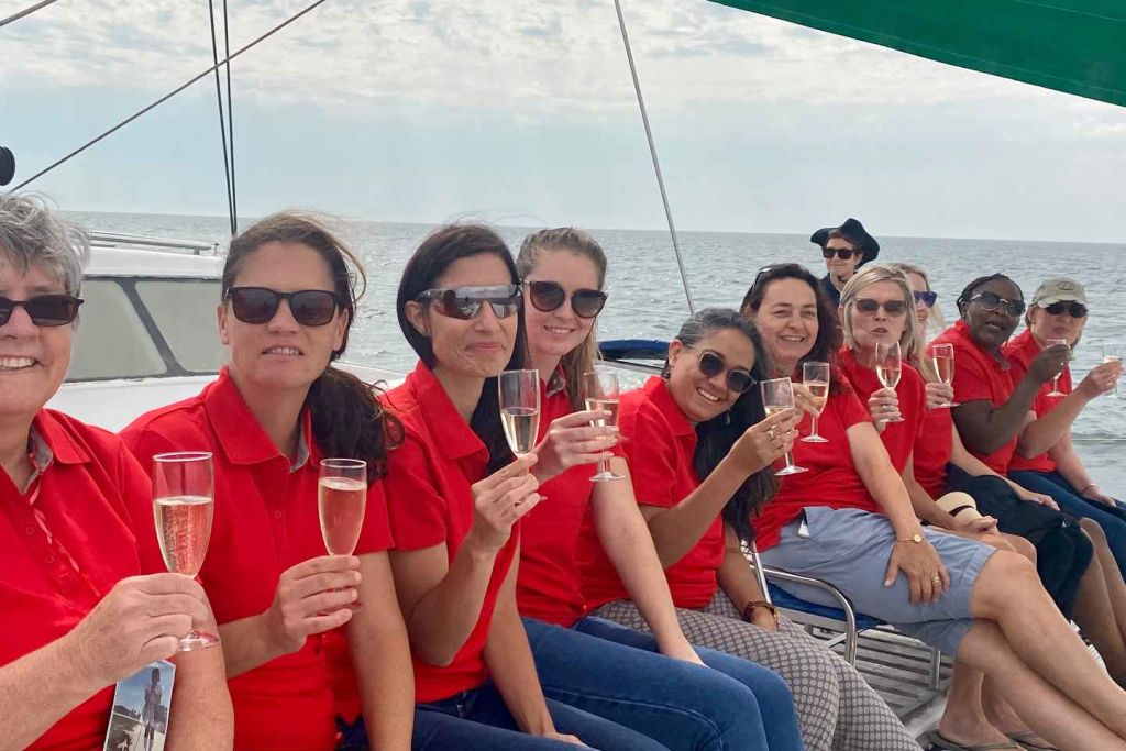 만으로 나가 럭셔리한 카타마란을 타고 휴식을 취하세요.