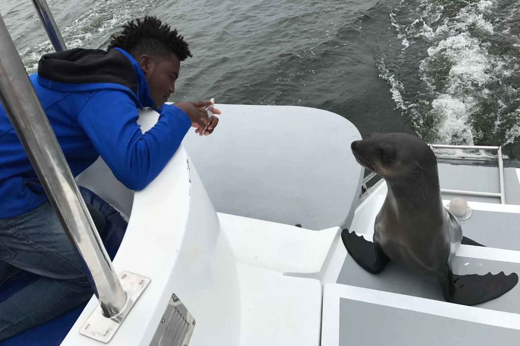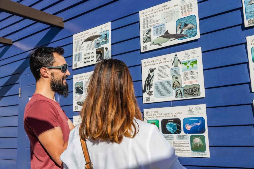 오전 8시 30분에 월비스 베이 워터프런트에서 체크인하여 돌고래와 고래 관찰 탐험을 시작하세요. 오전 8시 45분~9시 사이에 방파제에서 출발합니다. 이곳에서 나미비아의 바다 '빅 5' 탐험을 시작합니다.