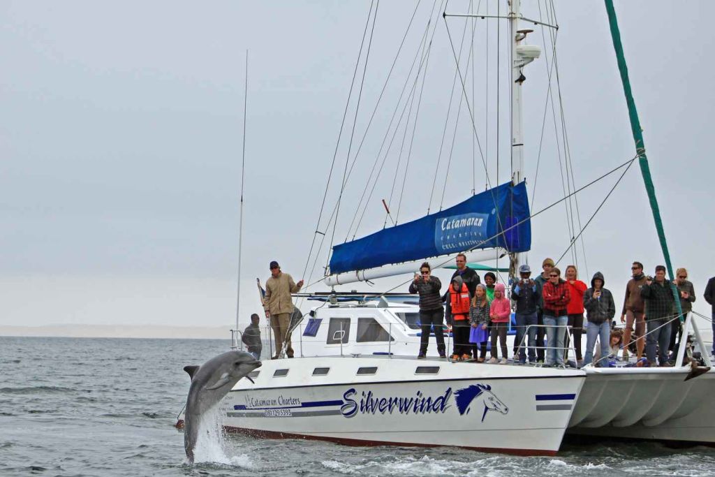 월비스베이 주변 바다에는 세 가지 종류의 돌고래가 서식하고 있습니다. 이 중 가장 흔한 것은 큰돌고래입니다. 헤비사이드 돌고래는 나미비아 해안에 서식하는 돌고래 중 훨씬 작지만 매우 사교적인 돌고래입니다. 이 돌고래는 매우 빠른 수영 선수이며 매우 활동적이고 사교적인 동물로 종종 10마리 이상의 무리를 이룹니다. 이 돌고래들이 점프하고 바퀴를 돌리는 것을 보는 것은 순수한 기쁨을 가져다주는 광경입니다. 어두운 돌고래는 뛰어난 공중 기술을 가진 또 다른 종이며, 손님들은 종종 그들의 숙련된 공중 공연을 즐깁니다.