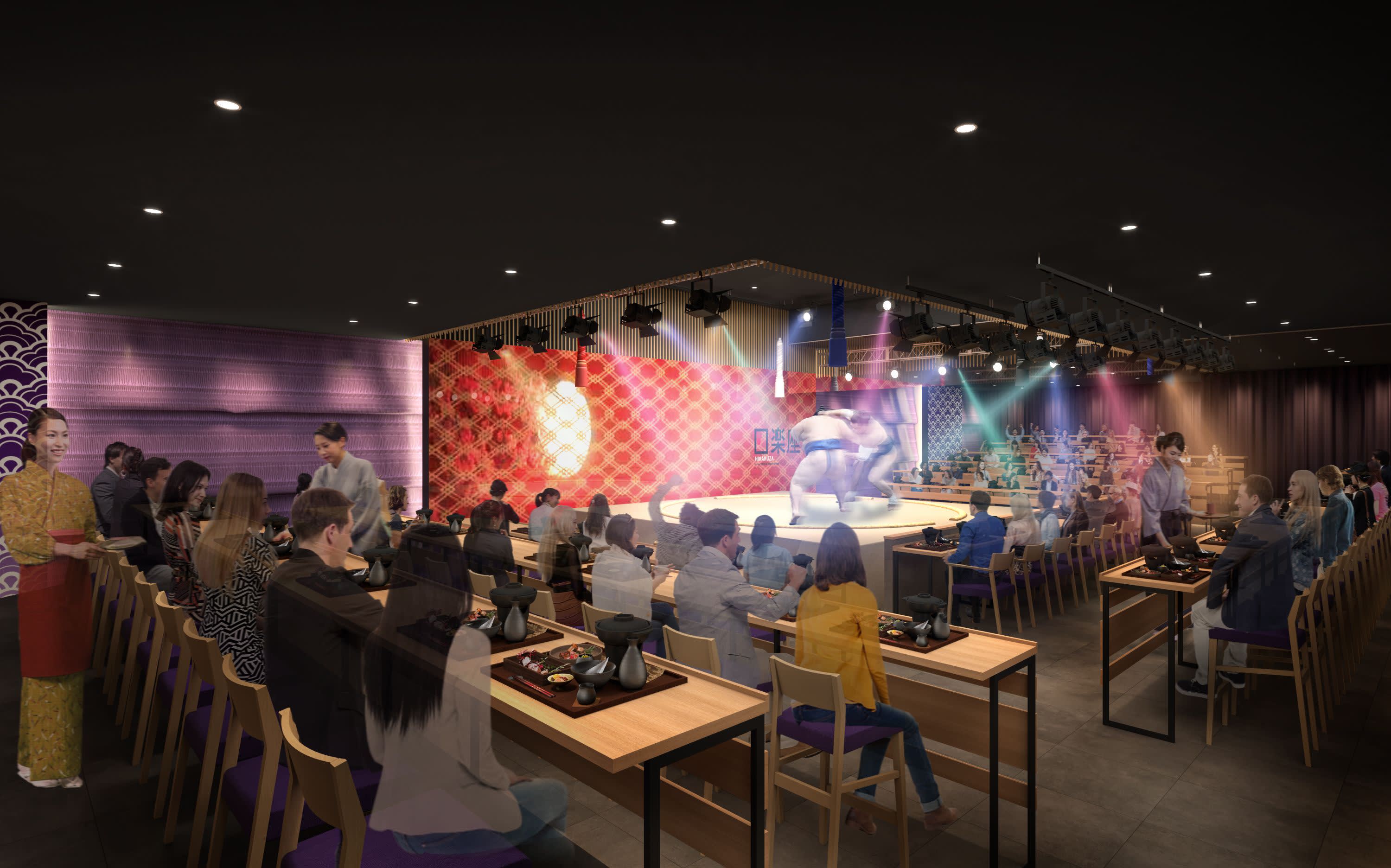 에도와 긴자 (Ginza)의 만남 도쿄 긴자에서 탄생한 몰입형 스모 테마 라이브 레스토랑에서 새로운 경험을 해보세요. 역동적인 사운드, 조명, 비디오 효과로 생생하게 연출된 실물 크기의 도효(스모 경기장) 무대에서 스모의 힘과 정신을 느껴보고, 고급스러운 일본 요리도 맛보세요.