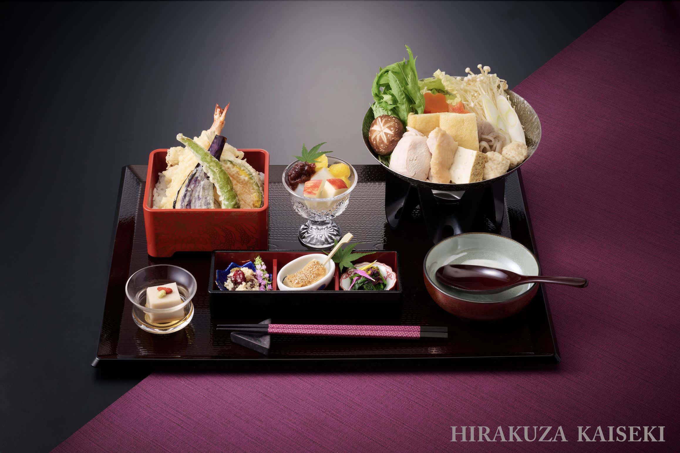* 성인에게는 튀김 도시락과 창코나베 등의 요리가 포함된 "히라쿠자 가이세키"를 제공합니다. 3세부터 12세까지의 아동에게는 "어린이 캐슬 식사"를 제공합니다.