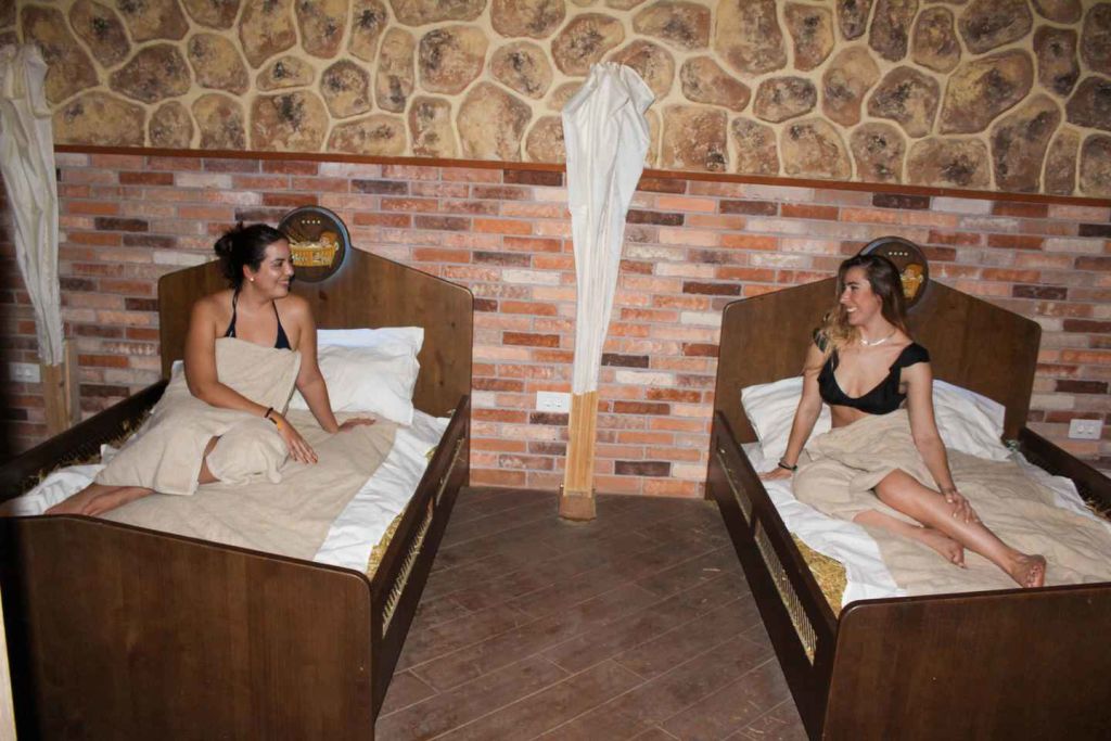 다음으로는 비어 스파에서 비타민 흡수를 돕는 비어 사우나를 즐기게 됩니다. 마지막으로 푹신하고 푹신한 침대에 누워 휴식을 취하며 마법의 시간을 보내세요. 긴장을 풀고 타월로 몸을 감싸 피부 트리트먼트를 마무리하세요.