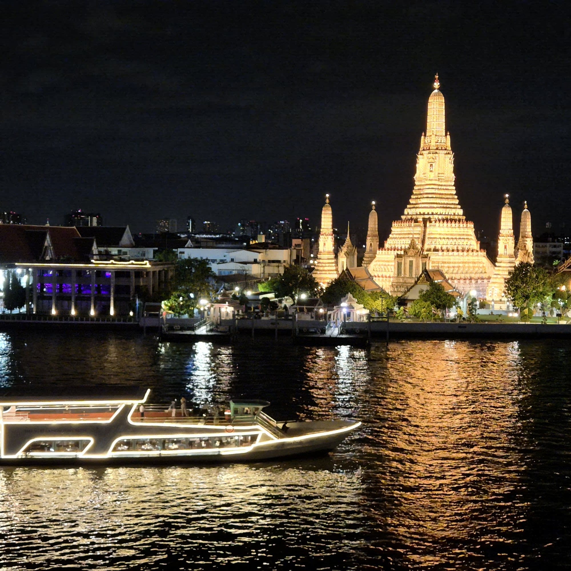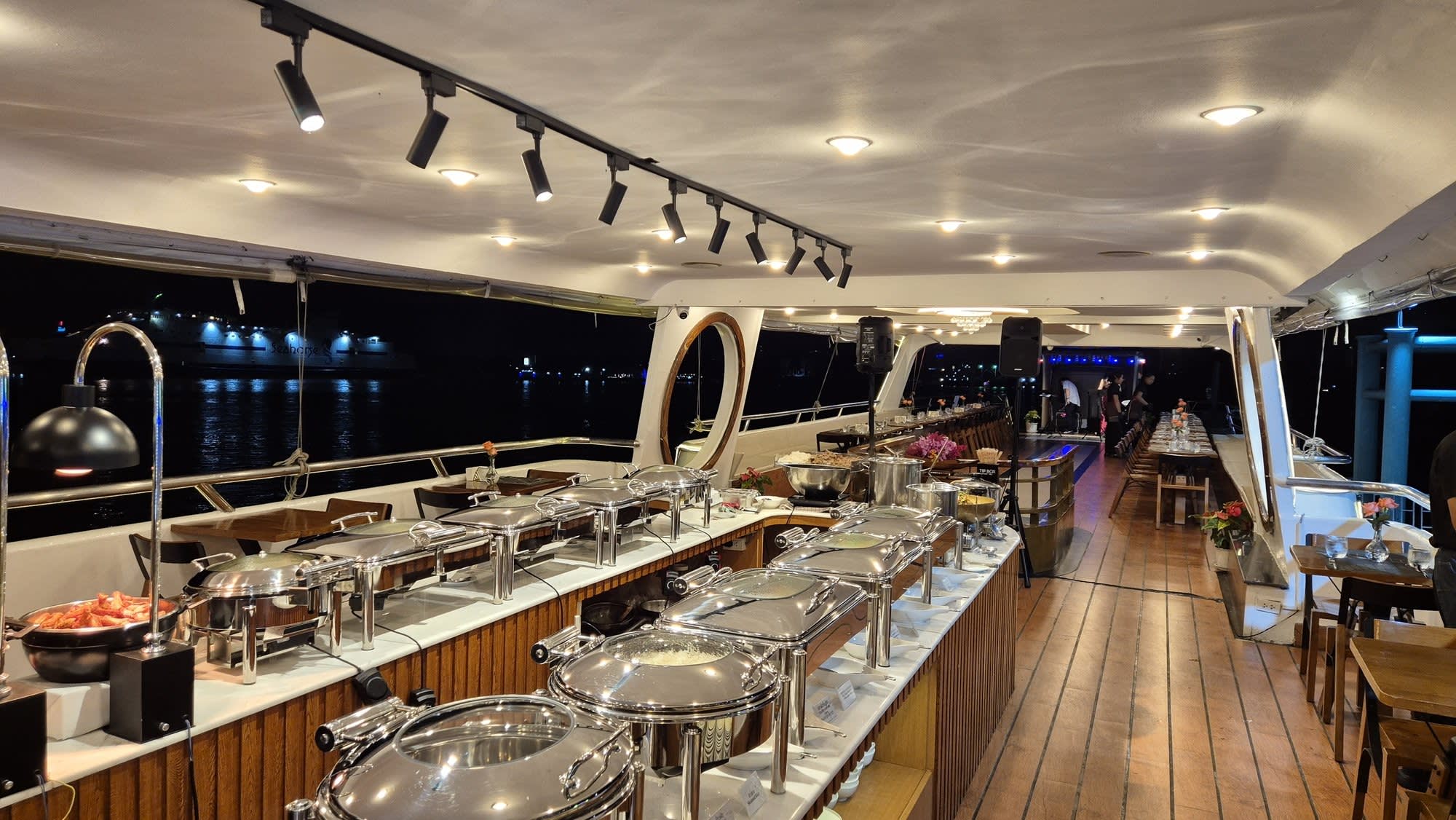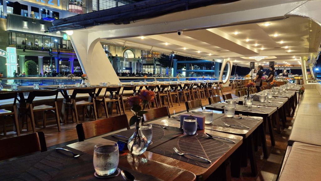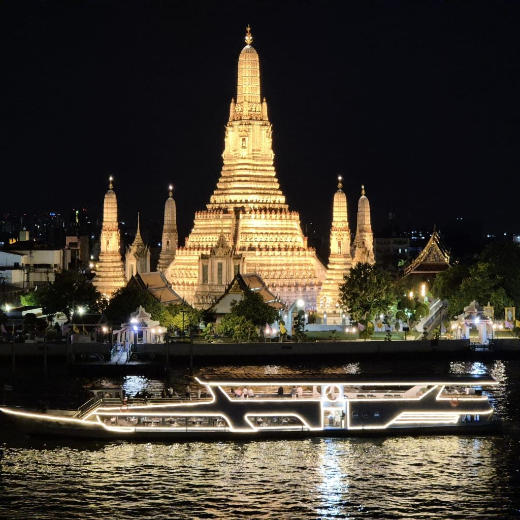 왓아룬 앞을 천천히 지나며 여유롭게 사진을 찍을 수 있는 특별한 크루즈로, 신선한 해산물과 30여 가지의 인터내셔널 뷔페를 즐기며 감미로운 라이브 공연까지 함께할 수 있습니다. 대형 크루즈보다 규모가 작아 혼잡하지 않고, 아늑하고 로맨틱한 분위기 속에서 방콕의 밤을 만끽할 수 있는 최고의 선택입니다.