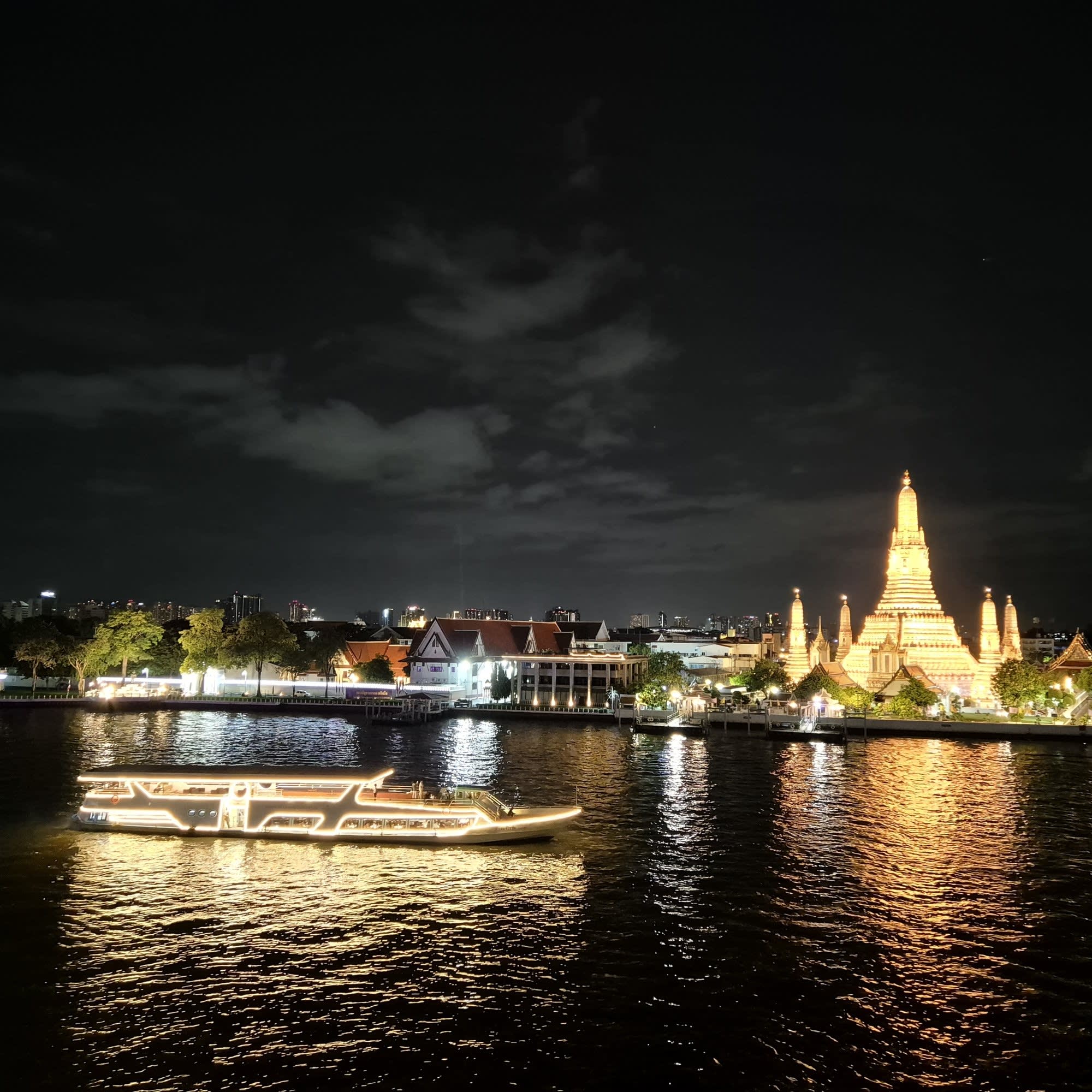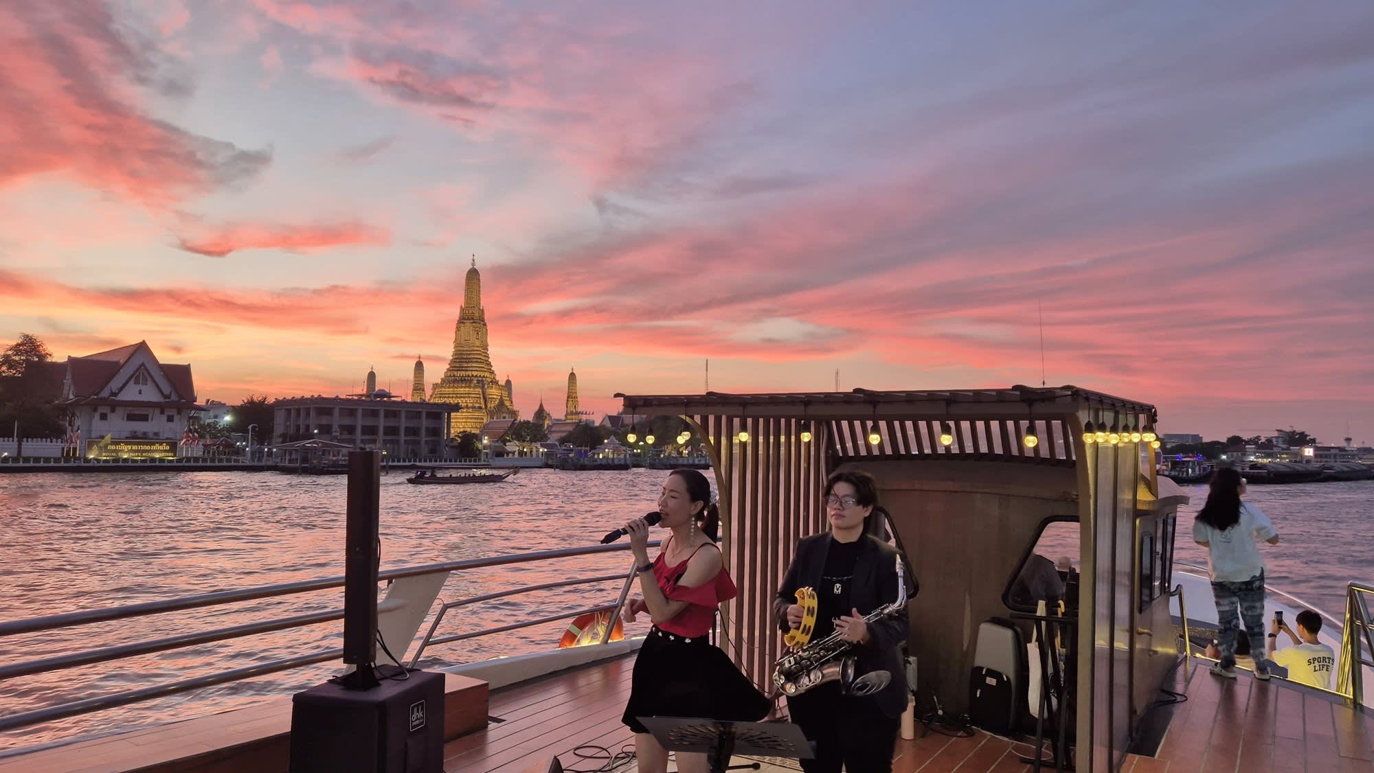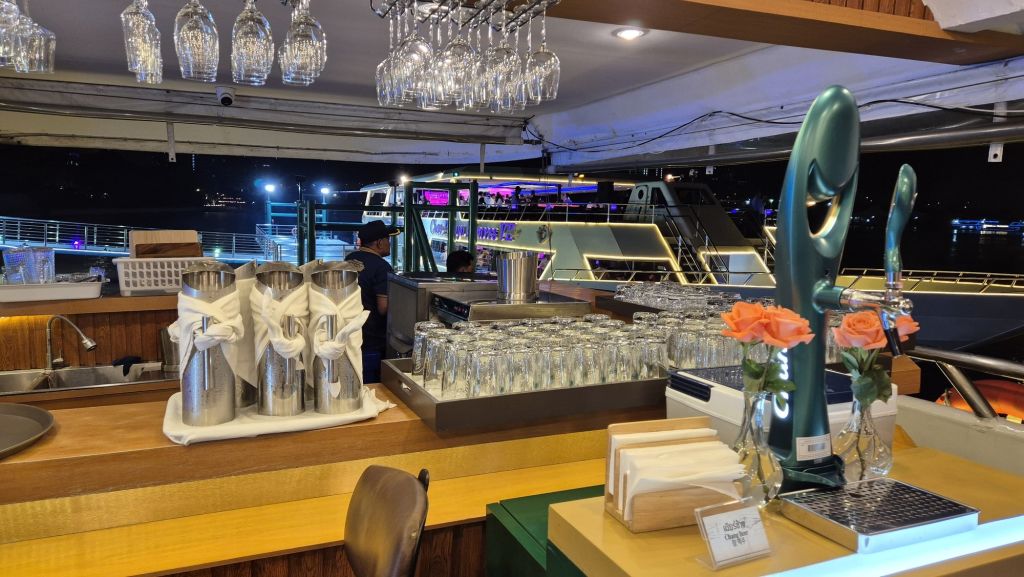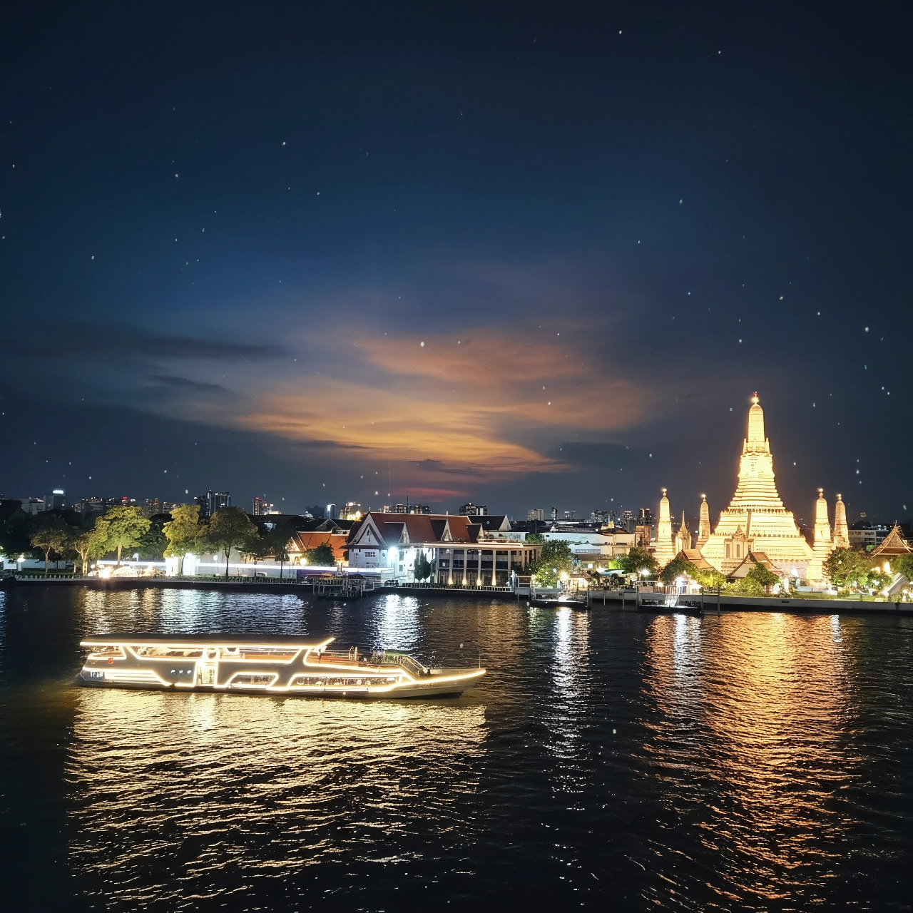 왓아룬 앞을 천천히 지나며 여유롭게 사진을 찍을 수 있는 특별한 크루즈로, 신선한 해산물과 30여 가지의 인터내셔널 뷔페를 즐기며 감미로운 라이브 공연까지 함께할 수 있습니다. 대형 크루즈보다 규모가 작아 혼잡하지 않고, 아늑하고 로맨틱한 분위기 속에서 방콕의 밤을 만끽할 수 있는 최고의 선택입니다.