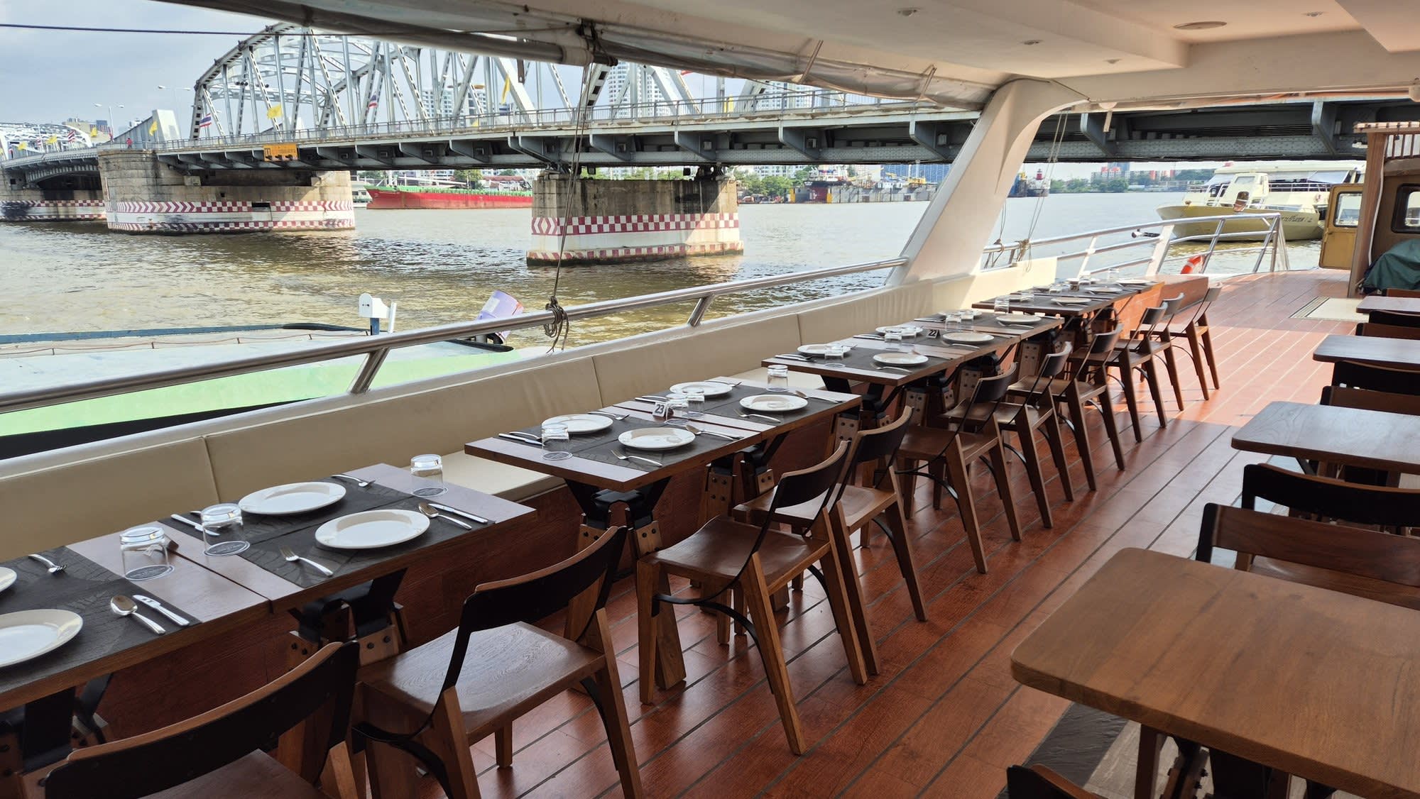 ▶ 주의사항 - 🚩 요트 대체 운항 안내 모객 인원이 40인 미만일 경우 크루즈가 아닌 요트로 대체 진행됩니다. 요트의 경우 뷔페식이 아닌, 전담 셰프의 태국 가정식 코스 요리로 제공됩니다. 모든 요리는 자리에서 서빙되며, 손님은 식사 동안 자리에서 일어나지 않아도 됩니다. 식사와 함께 짜오프라야강의 야경에 온전히 몰입할 수 있습니다 요트의 경우 크루즈와는 다른 시간으로 운항을 하니 아래 일정을 꼭 확인 해주세요. 체크인 시간 : 18:00 ~ 18:40 운항 시간 : 19:00 ~ 21:00 (탑승 시작 5분전에 pier 1 선착장으로 가주세요) - 🌧️ 우천 시 운영 비가 오는 날에도 운영하나, 강 수위가 높아질 경우 안전상의 이유로 다리 밑을 지나지 못할 수 있습니다. 이 경우 기존에 안내된 경로와 다르게 운항하여 왓 아룬을 관람하지 못할 수 있습니다 실외석을 배정 받았을 경우 실내로 이동하여 이용하시게 됩니다. - 📢 기타 안내사항 운행시간, 운행경로, 식사 종류 등 크루즈 사정에 의해 임의로 변경될 수 있습니다. 성탄절, 송크란, 신년, 태국 휴일, 발렌타이데이 등 특수 기간에는 특별 요금이 부과될 수 있습니다. 샹그릴라에서 제공하는 샹그릴라 호라이즌 디너크루즈가 아닙니다. ▶ 아동 정책 유아 : 만 3세 이하 (무료 이용 가능, 아동을 위한 음식 별도 제공되지 않음) 유아 의자는 요청 가능하나, 당일 제공이 어려운 경우 일반 의자로 제공됩니다. 유모차 입장 가능하나 이 경우 안전상의 문제로 실내석만 이용 가능합니다. (유모차가 있을 경우 채널톡으로 메세지 주세요) 아동 : 4~10세 (아동 요금으로 이용 가능)