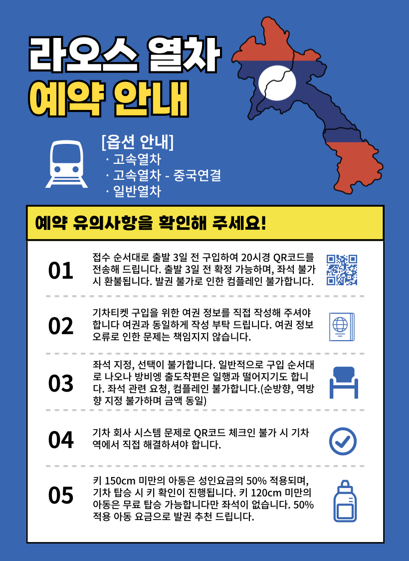 지금 바로 예약하고 편리한 라오스 기차 여행을 즐겨보세요~