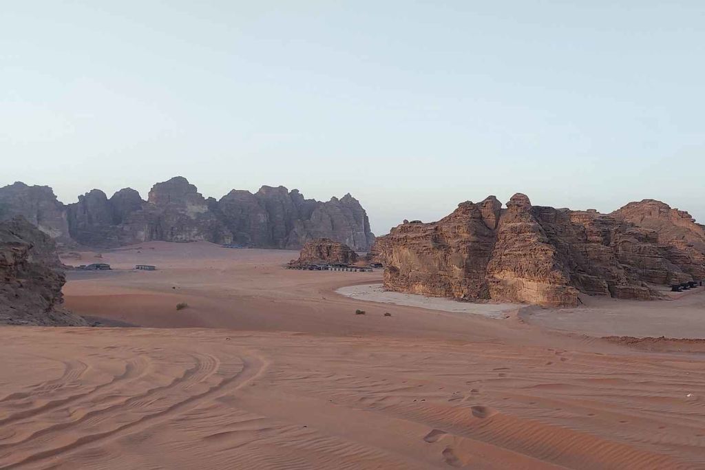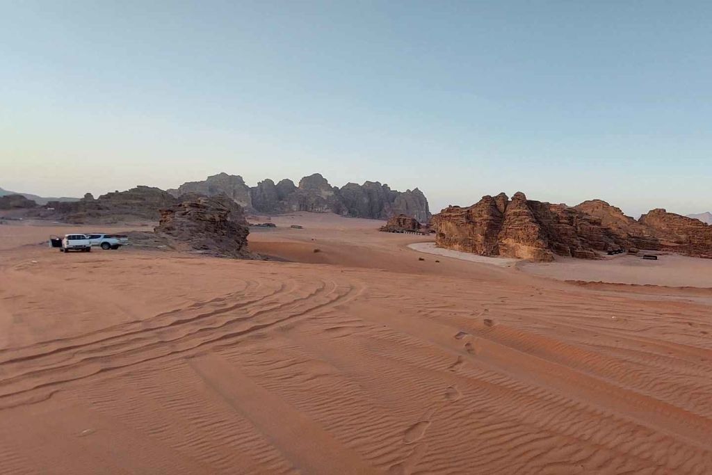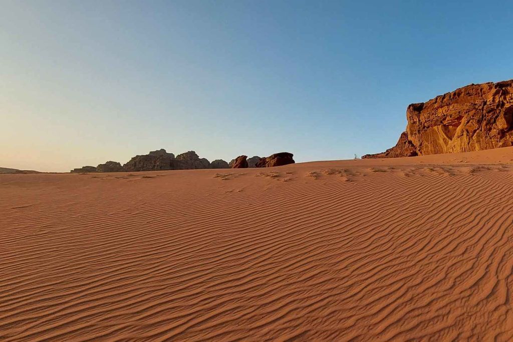 도착 후, 지프 투어가 기다리고 있어 숨막히는 사막을 탐험합니다. '달의 계곡'으로 알려진 와디 럼은 드라마틱한 풍경, 거대한 바위 형상, 그리고 '아라비아의 로렌스' 촬영지로 유명합니다.