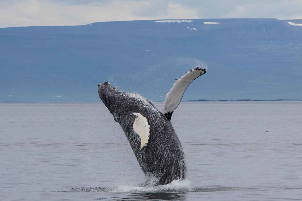 마법의 웨스트피오르드에서 가장 곡예를 잘하는 고래를 만나보세요. 홀마비크 외곽의 피오르드는 여름과 특히 가을에 혹등고래가 많이 서식하는 곳으로 알려져 있습니다.