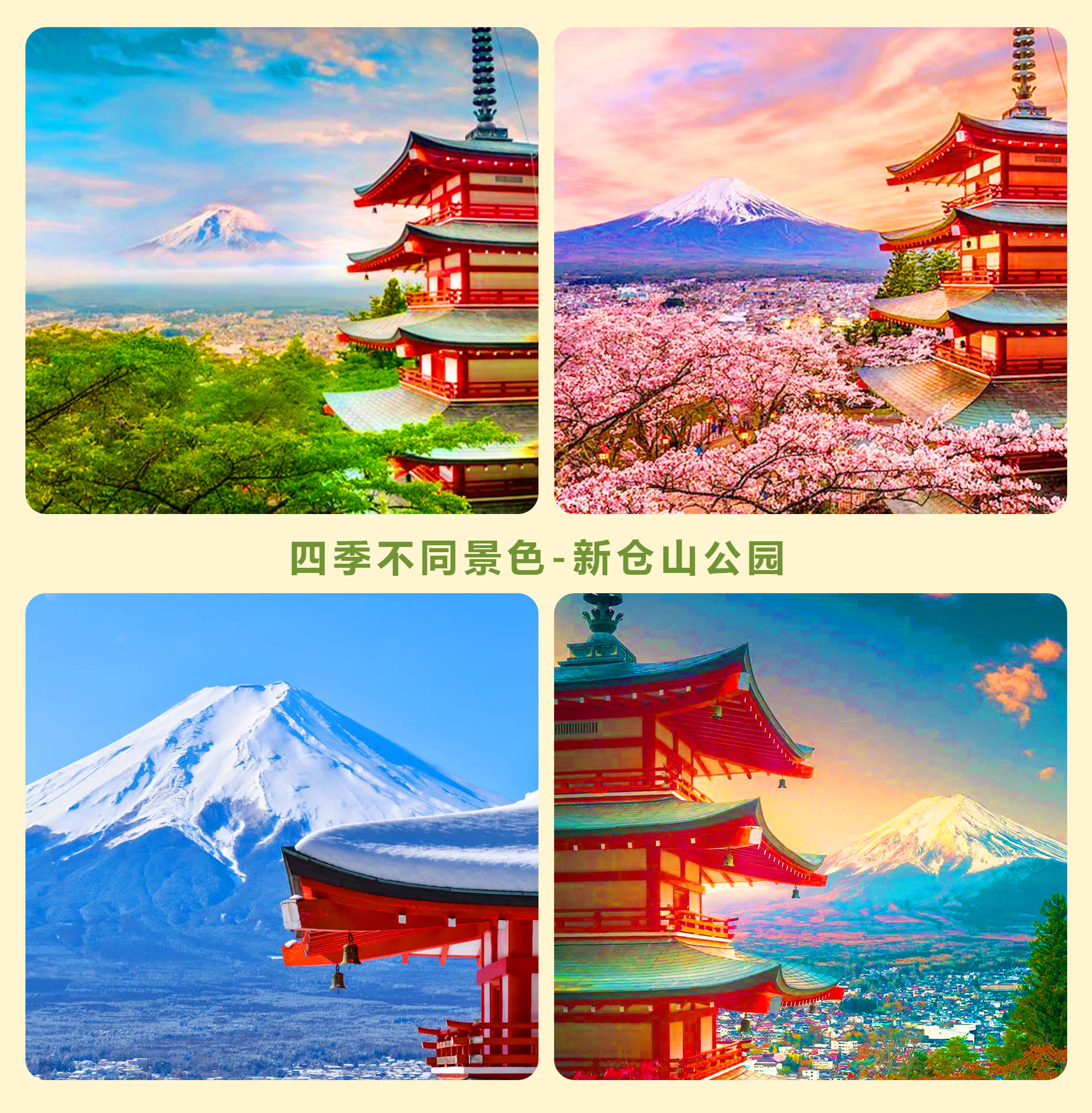 * 아라쿠라야마 공원 | 후지산의 대표적인 랜드마크 방문 엽서나 여행 포스터에서 후지산의 아름다운 사진을 본 적이 있다면, 아마도 아라쿠라야마 센겐 공원일 것입니다! 이곳은 후지산과 일본 전통 건축물의 완벽한 조화를 감상할 수 있는 최고의 장소입니다.