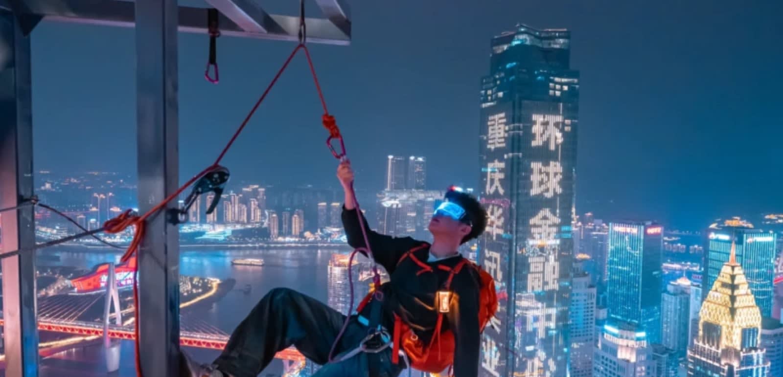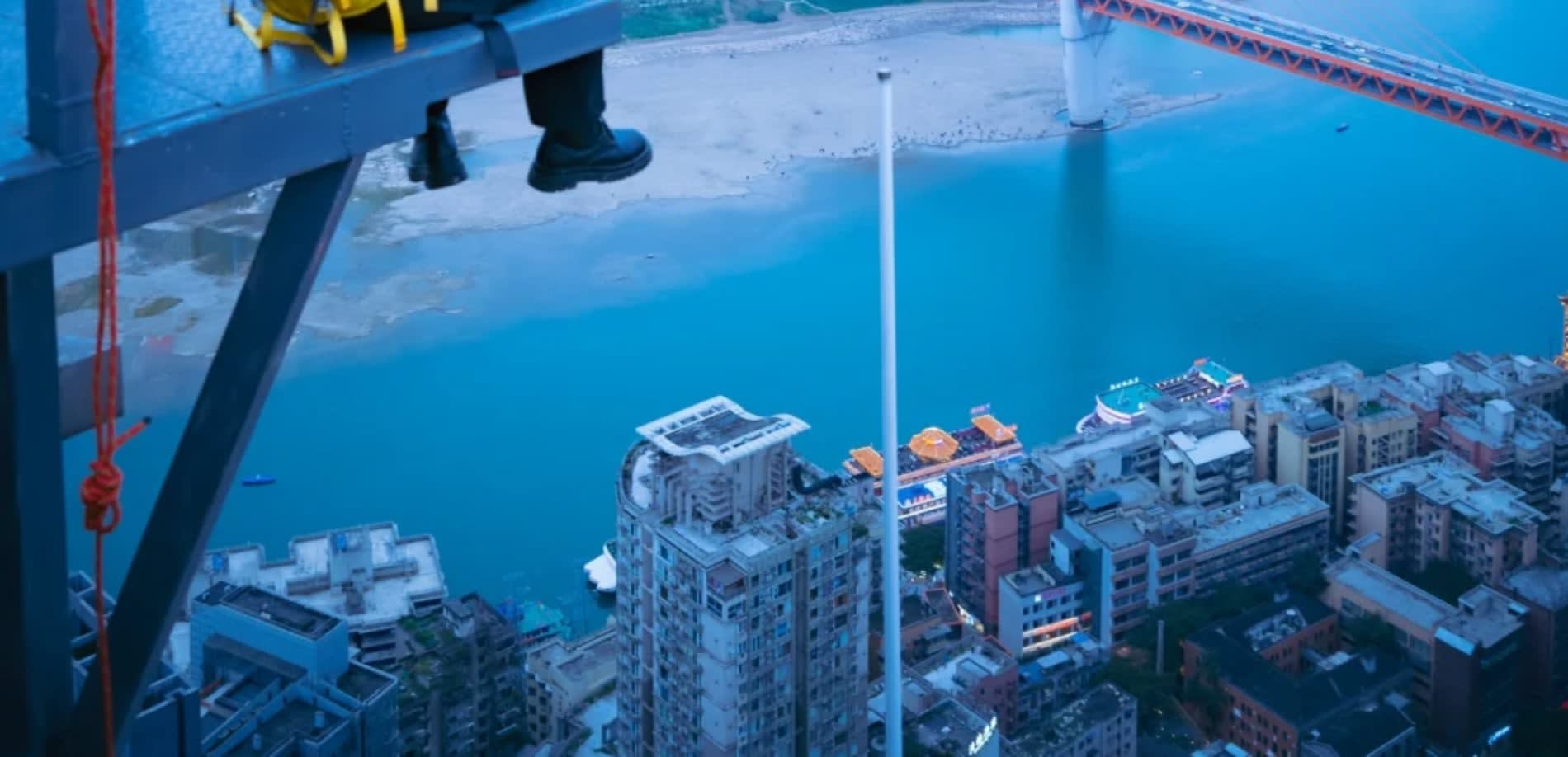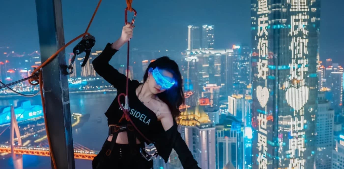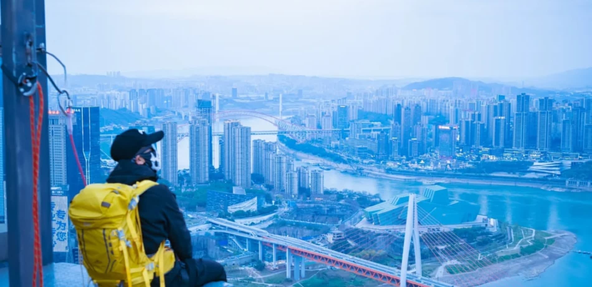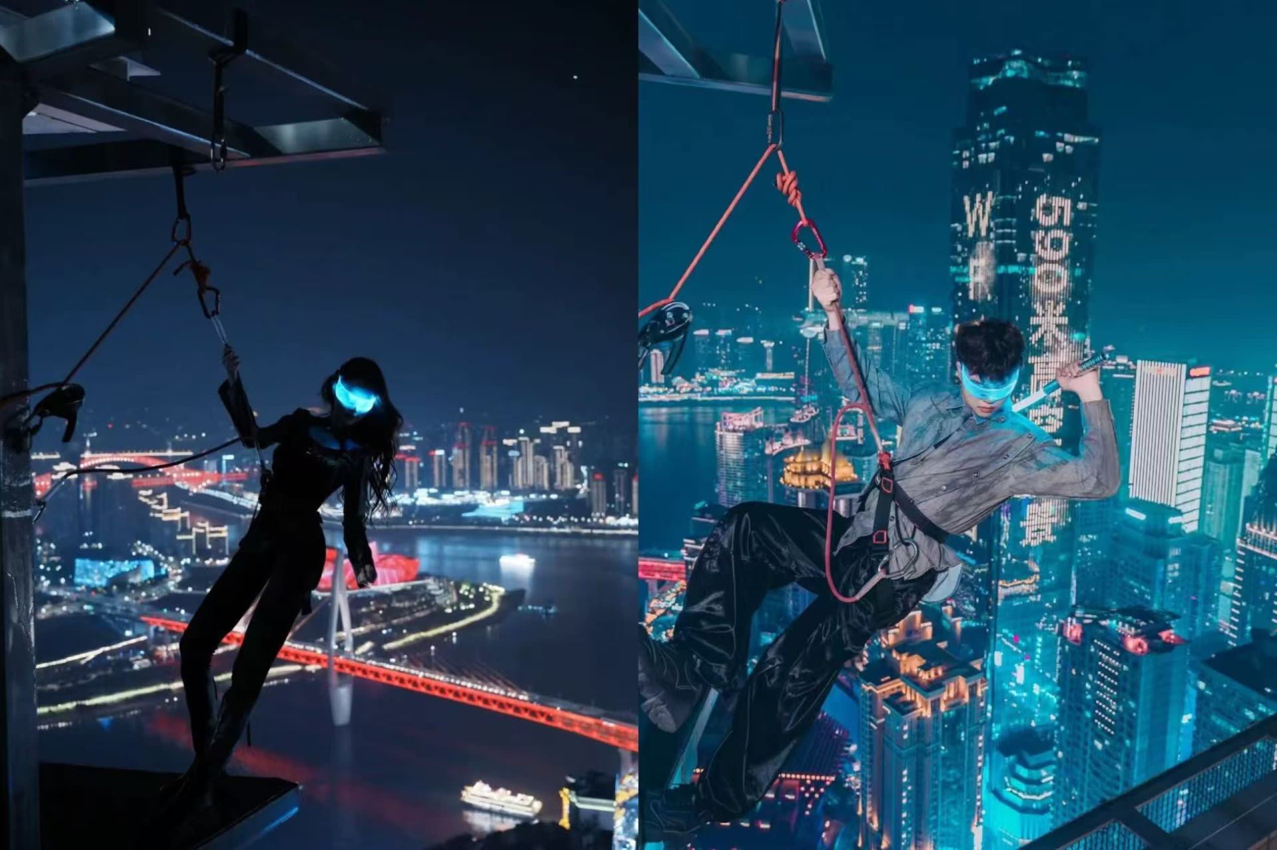구름 위에서 산성 전체 조망 + 고공 로프 하강 + 아시아 최장 외부 엘리베이터 탑승 + 360° 파노라마 뷰로 양강 합류 지점 조망 + 8D 입체 마법 도시 충칭 체험