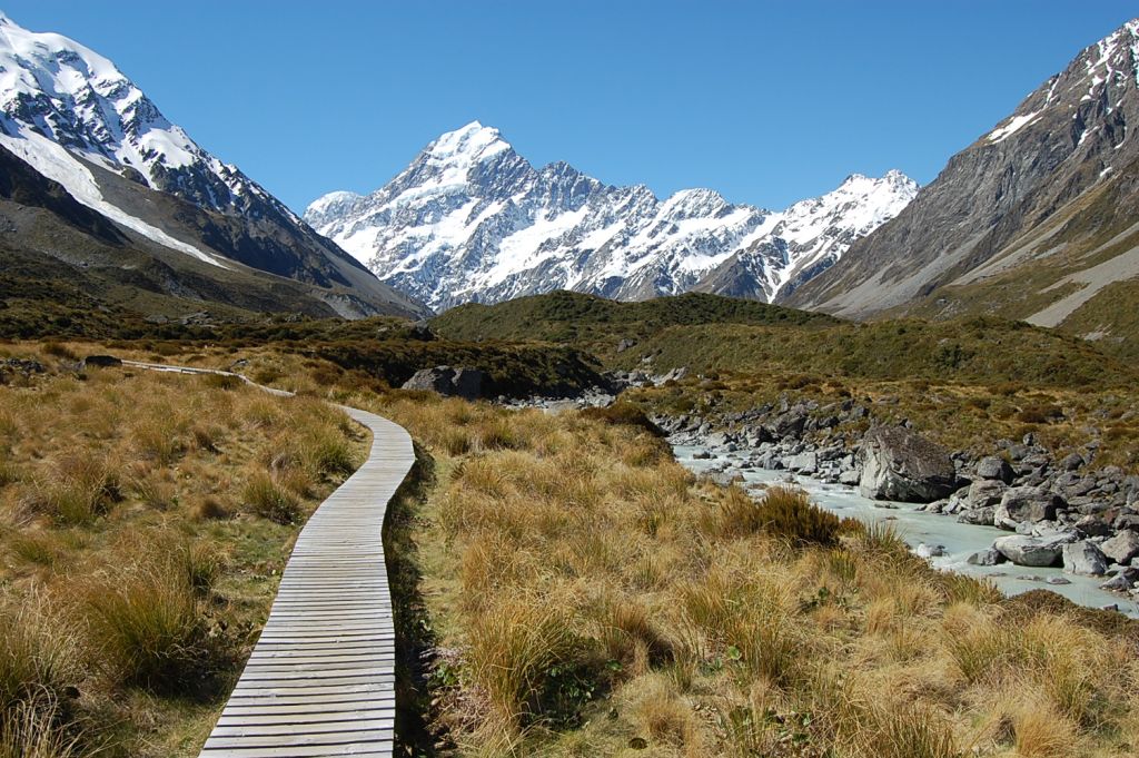 ✅ 후커밸리 산행길은 마운트 쿡과 그 서쪽의 만년설 세프톤 산(3157m) 사이의 계곡길 입니다. 계곡 아래쪽 캠핑장에서 시작되는 이 산행은 3개의 구름다리를 건너 만년설과 빙하를 바라보며 마운트쿡 서편의 후커빙하 말단의 터미널호수까지 다녀오는 왕복 3시간 정도의 산행길로 낮은 난이도의 트랙킹 코스 입니다.