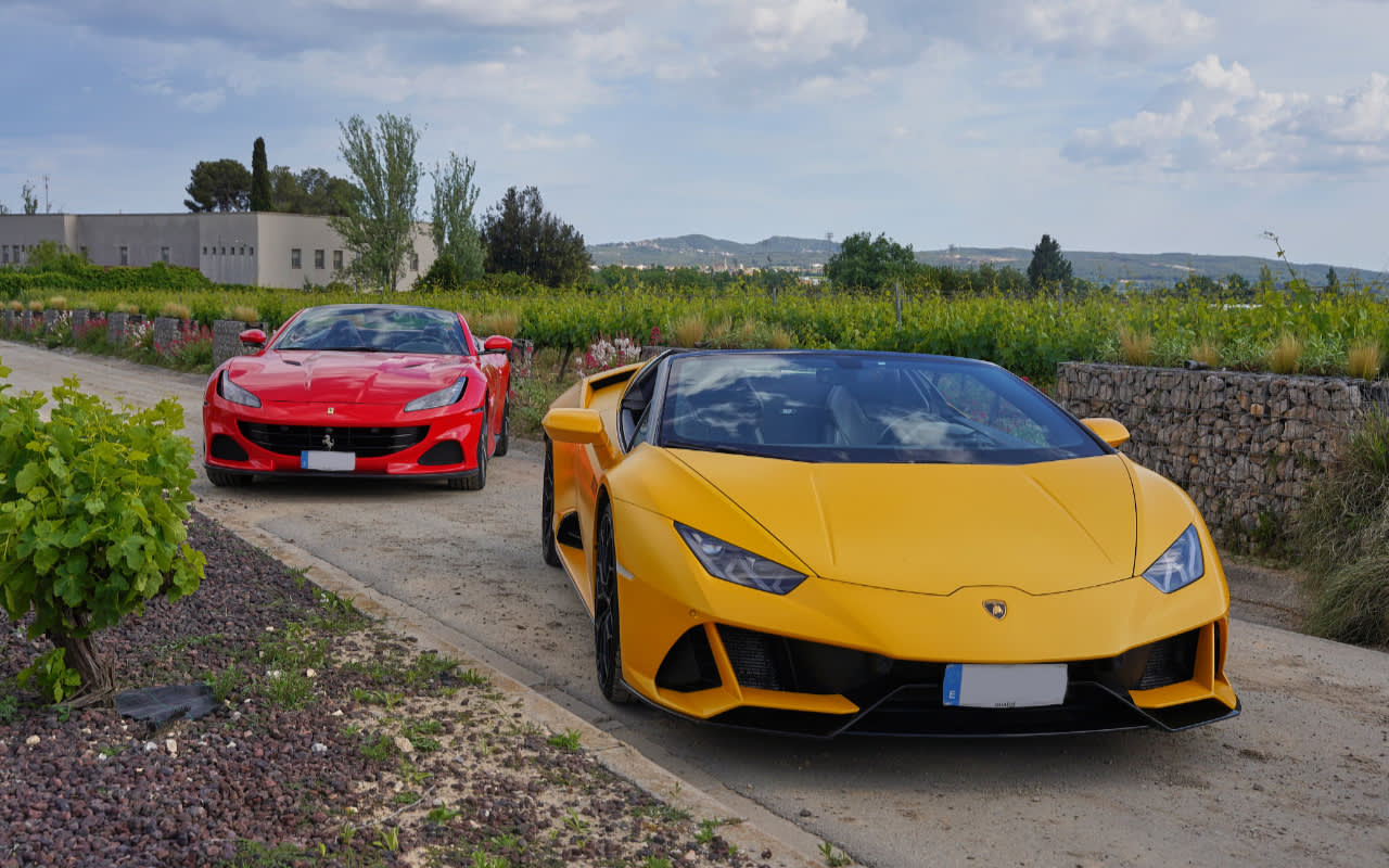 * 카탈로니아의 아름다운 포도밭 풍경과 구불구불한 시골길을 따라 럭셔리 슈퍼카를 운전해 보세요.