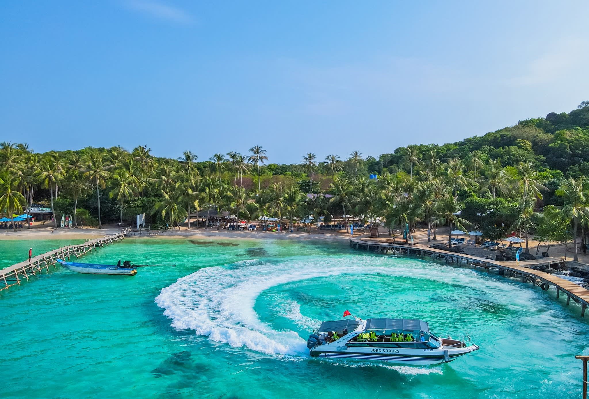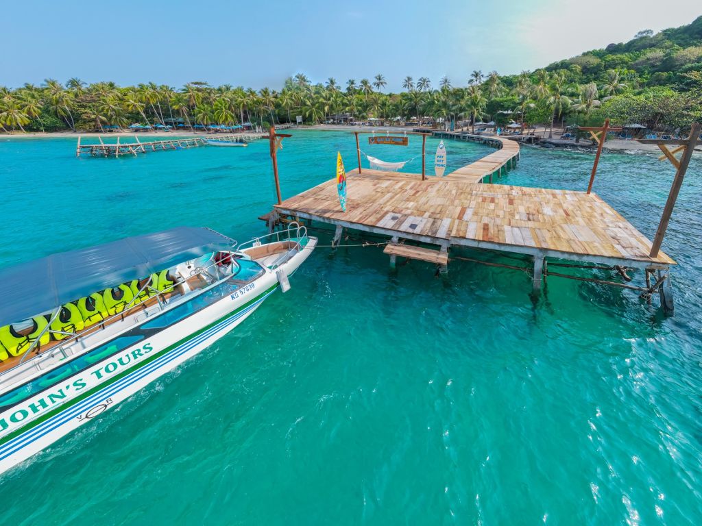 • 안토이 항구에서 스피드보트를 타고 편안하게 휴식을 취해보세요. 맑고 투명한 바닷물과 자연 그대로의 산호를 탐험할 수 있는 최고의 스노클링 명소인 부옴 섬까지 선장님이 군도 사이를 누비며 안내해 드립니다. 다음 목적지는 메이 룻 총 섬입니다. 이곳에서 스노클링을 계속 즐기거나 해변을 따라 걷고, 석호에서 수영을 하거나, 해변과 다리를 따라 산책하고, 햇볕을 쬐거나 상쾌한 칵테일을 즐길 수 있습니다.