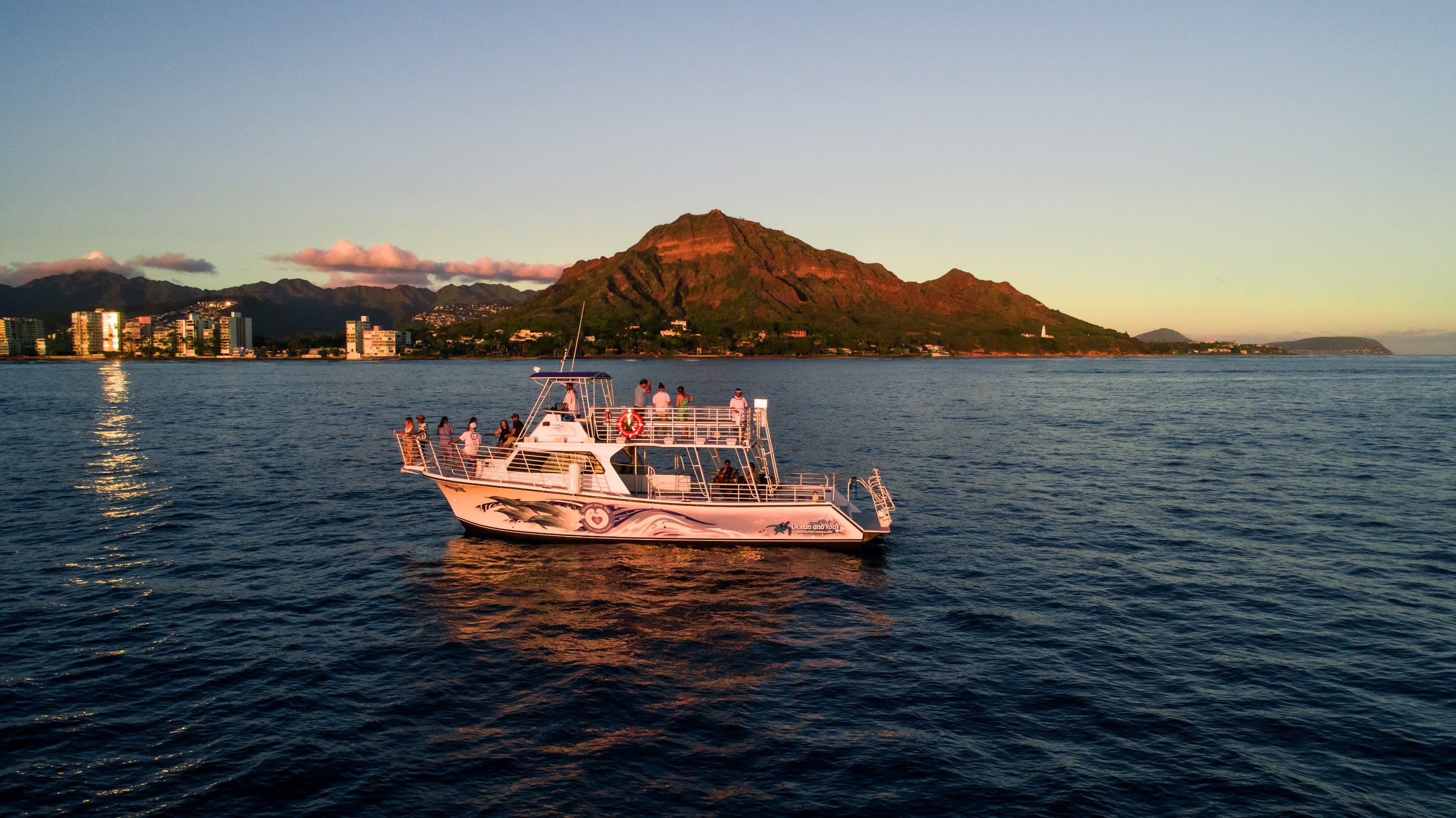 겨울 시즌에는 하와이 회전돌고래나 혹등고래를 볼 수도 있습니다. 저희 보트는 2개의 데크, 무드 조명, 서라운드 사운드, 타이타닉 스타일의 선수, 선상 화장실을 갖추고 있습니다.