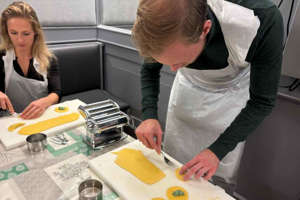 티라미수가 준비되면 다음 흥미로운 단계인 파스타 만들기로 넘어갈 차례입니다! 워크스테이션으로 이동하면 전문가의 안내에 따라 이상적인 파스타 반죽을 준비하는 과정을 안내해 드립니다. 밀가루의 종류와 파스타 프레스카와 파스타 세카의 차이점에 대해 알아보고, 파스타를 정성껏 밀고, 자르고, 모양을 만들면서 창의력을 발휘해 파스타를 만들어 보세요.